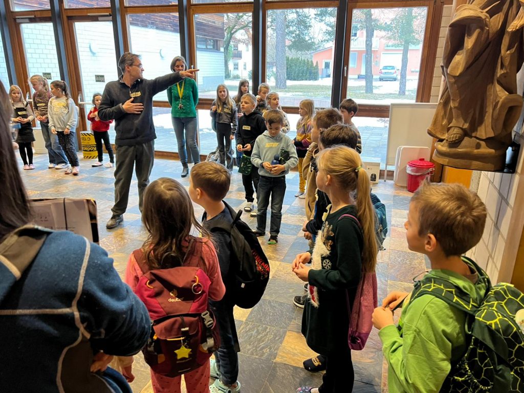 „Mit Jesus unterwegs“ unter diesem Motto stand der Kinderbibeltag 2026. Die Kinder lernten in vier Kleingruppen je eine Jesusgeschichte aus dem Evangelium kennen: Der Sturm auf dem See, Jesus und Zachäus, Jesus segnet die Kinder und das Gleichnis vom barmherzigen Samariter. Mit abwechslungsreichen Erzählmethoden, Liedern und Bastelarbeiten wurde es ein bunter Nachmittag. Den Höhepunkt und Abschluss bildete der gemeinsame Abendgottesdienst in St. Josef, in dem die Kinder die frohe Botschaft Jesu anhand ihrer Bastelarbeiten vorstellten. Pastoralreferent Konrad Kraus führte verantwortlich durch den Nachmittag. Pfarrer Michael Hirmer bedankte sich bei allen, die diesen Kinderbibeltag ermöglicht und mitgestaltet haben.