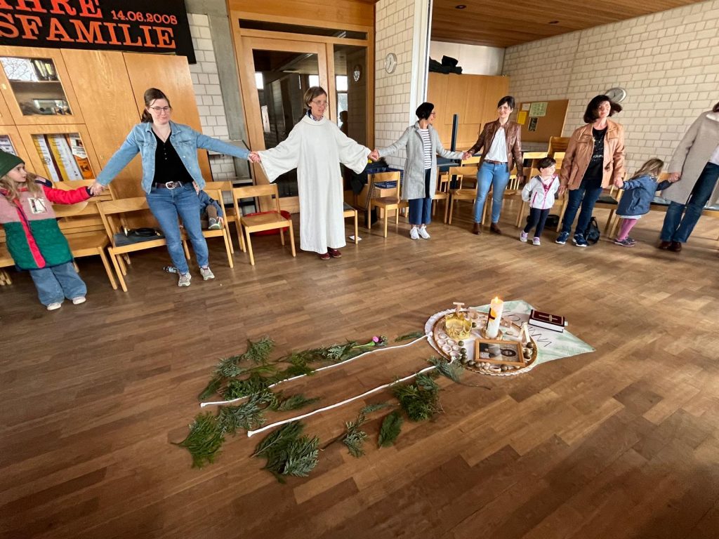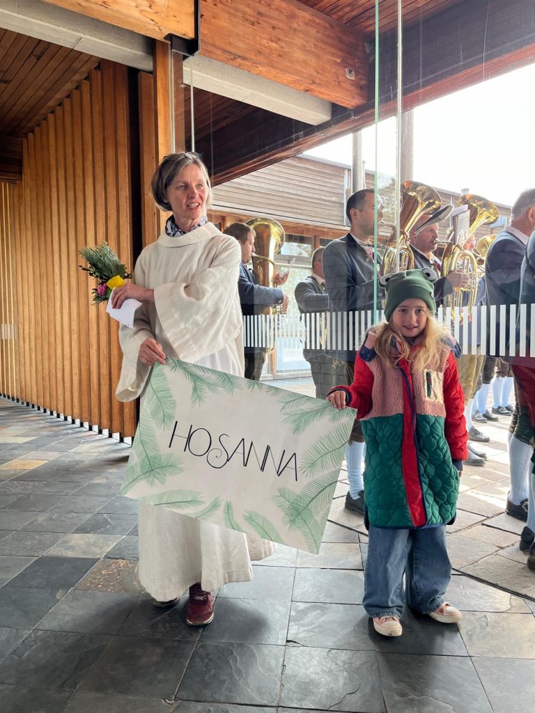 Mit dem Palmsonntag beginnt die Heilige Woche. Die Kinder gestalteten die Stadt Jerusalem und schmückten den Weg mit Zweigen. „Jesus soll unser König sein. Hosianna Amen.“ tönte es im Pastoralzentrum St. Josef.