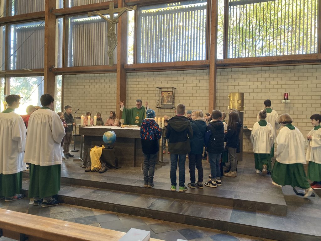 Auch beim Familiengottesdienst in der Pfarrkirche St. Josef ging es um das Thema Hoffnung. Zur Gabenprozession wurden Symbole zum Altar getragen: ein Globus als Zeichen der einen Welt, Reiskörner als Hoffnungssamen, Wanderschuhe zum Zeichen Pilger der Hoffnung zu sein. Der Jugendchor gestaltete den Familiengottesdienst musikalisch.