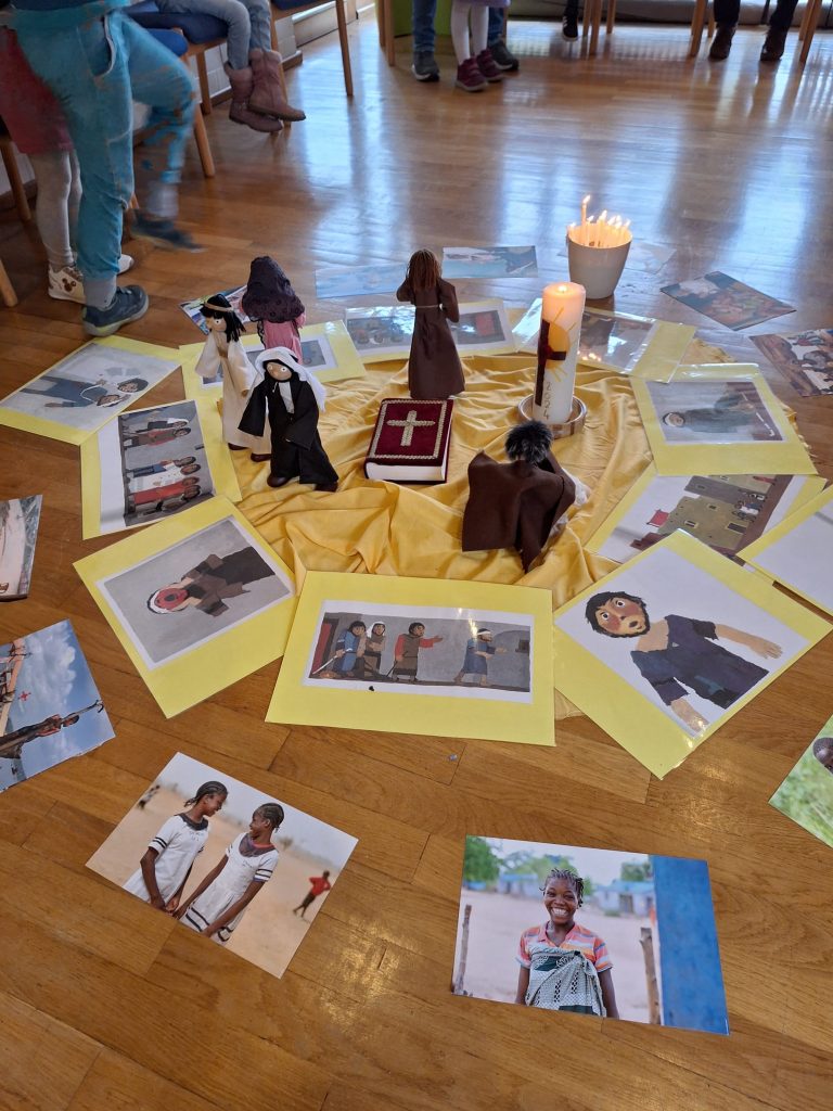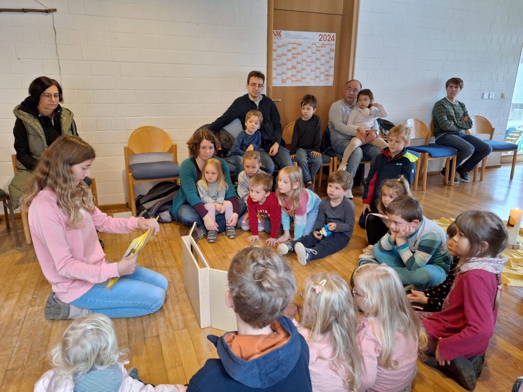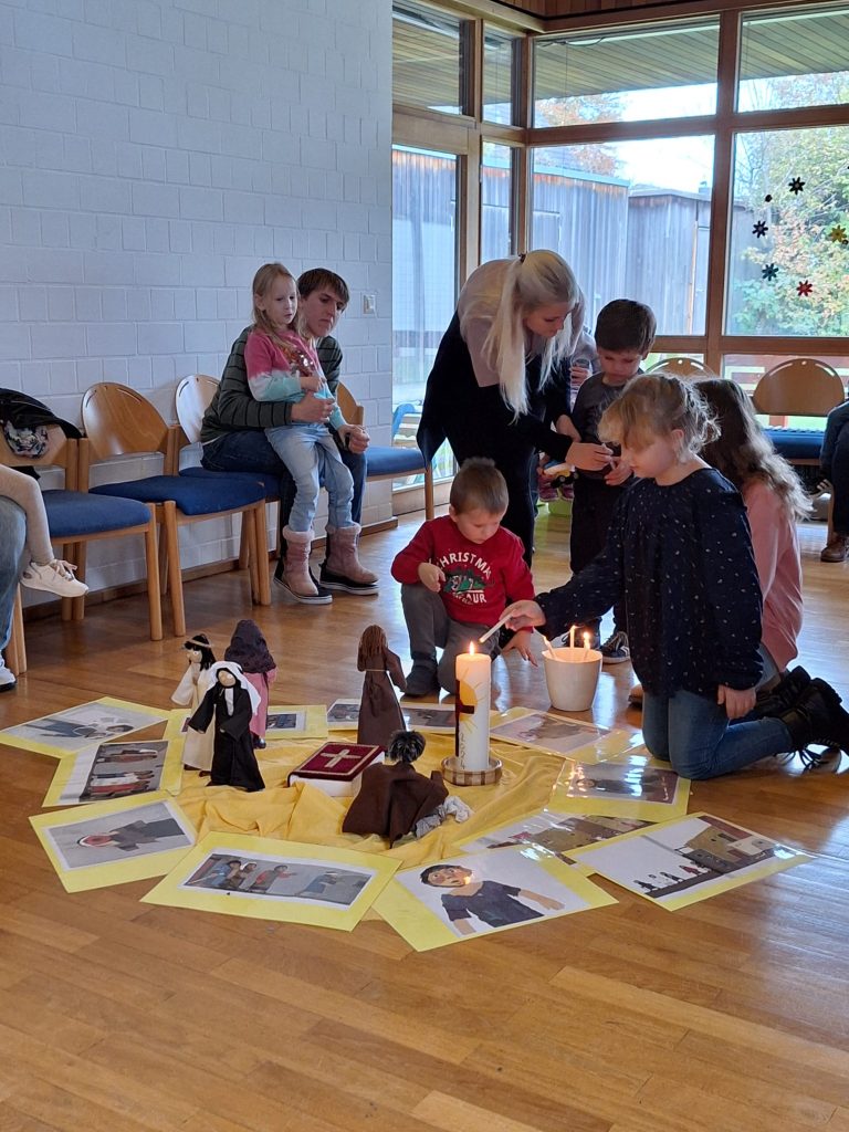 Am Weltmissionssonntag versammelten sich die Jüngsten im Pastoralzentrum zur Kinderkirche. Im Mittelpunkt stand das Evangelium vom blinden Bartimäus. Mit Eifer hören die Kinder der biblischen Erzählung zu und enzündeten ein Licht bei den Fürbitten.
