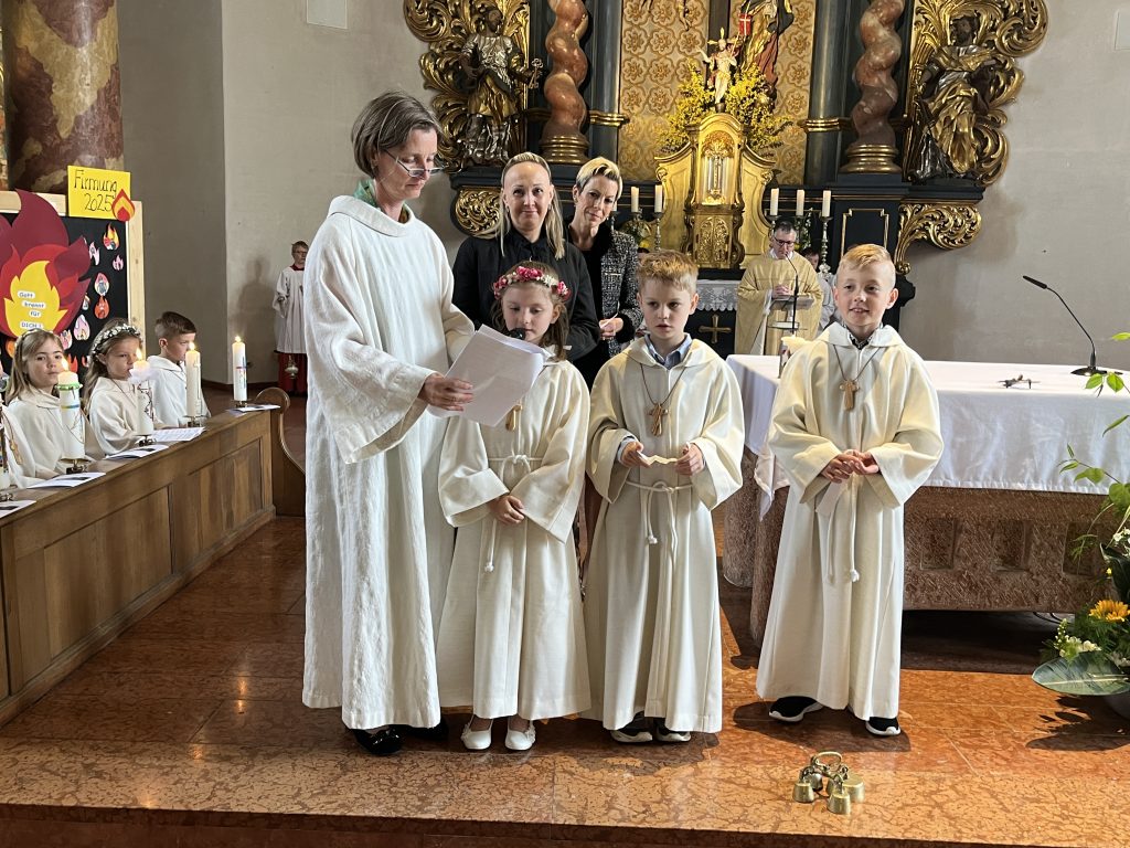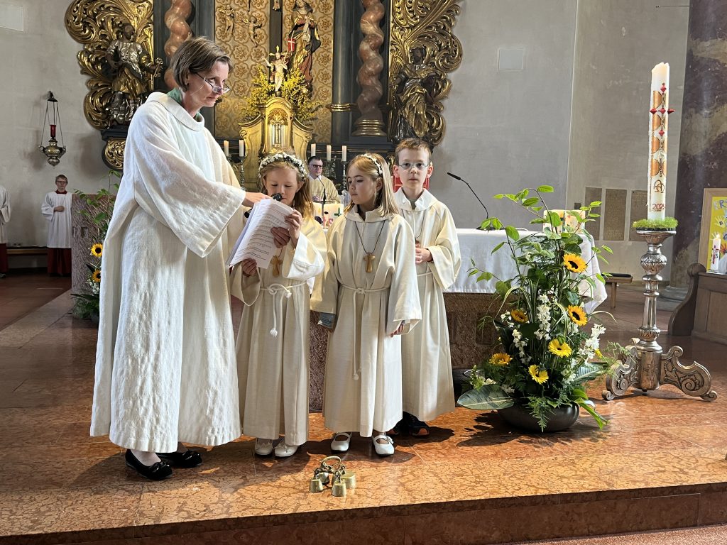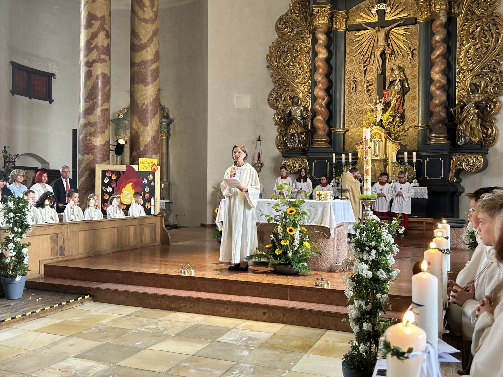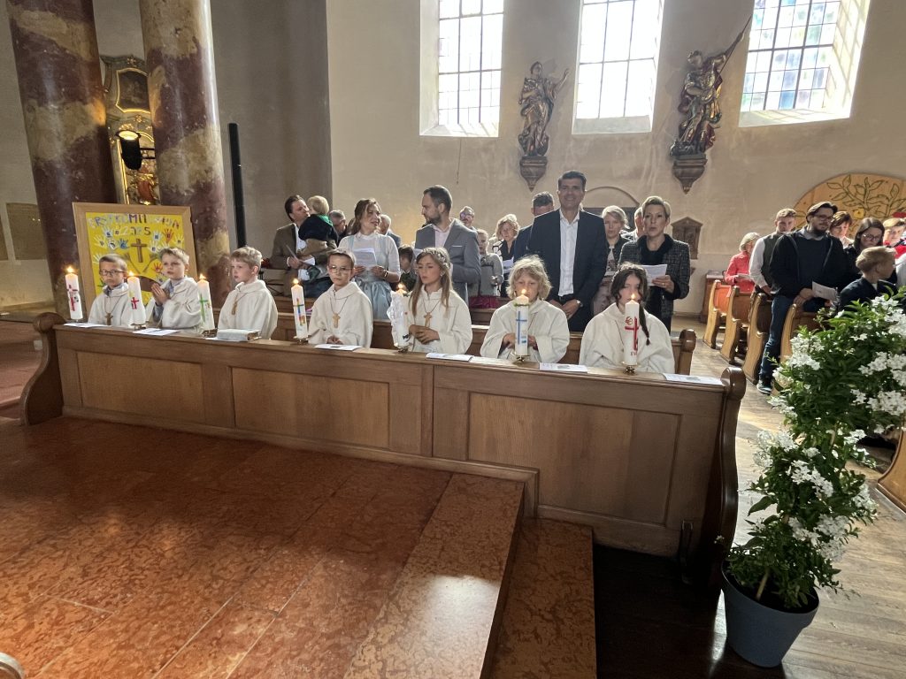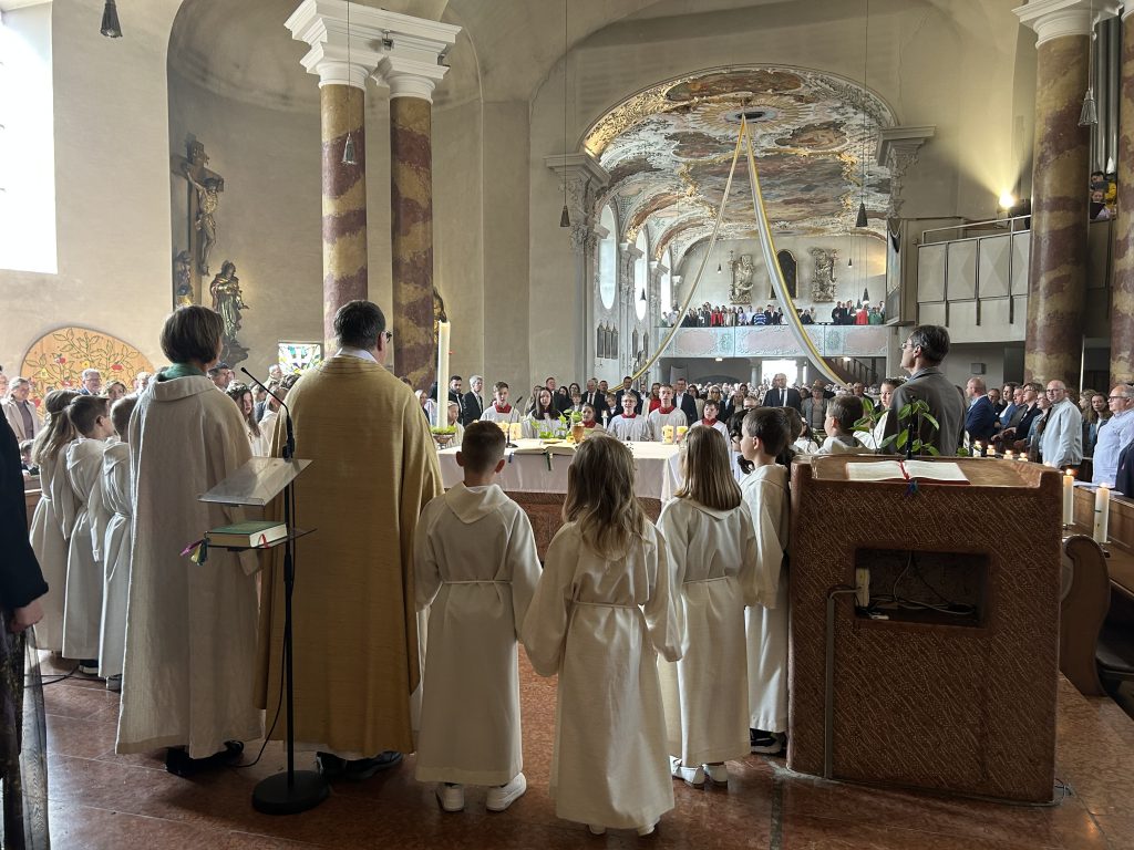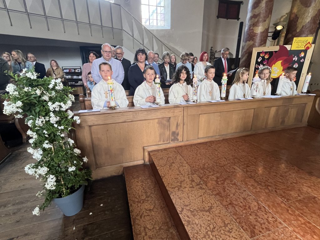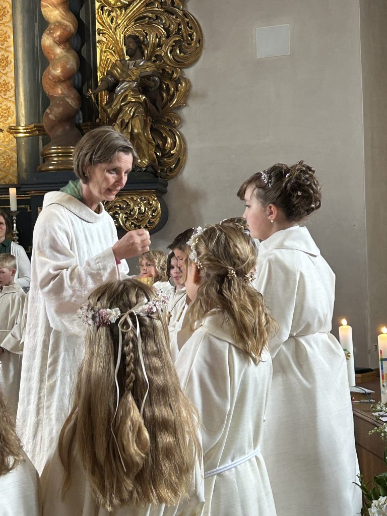 Nachdem die Kommunionkinder schon in der Feier des Letzten Abendmahles am Gründonnerstag zum ersten mal den Leib Christi in der heiligen Kommunion empfangen haben, durfte am 18. Mai richtig groß gefeiert werden. Mit Kommunionkerze und dem weißen Taufkleid zogen die Kinder in die Vituskirche von Burglengenfeld ein. Der feierliche Gottesdienst wurde von Gemeindereferentin Bernadette Biller vorbereitet und durch den Kirchenchor St. Vitus unter der Leitung von Hubert Zaindl musikalisch gestaltet. Dekan Michael Hirmer bedankte sich am Ende des Gottesdienstes bei allen, die die Kinder auf den Empfang der Eucharistie vorbereitet hatten.
