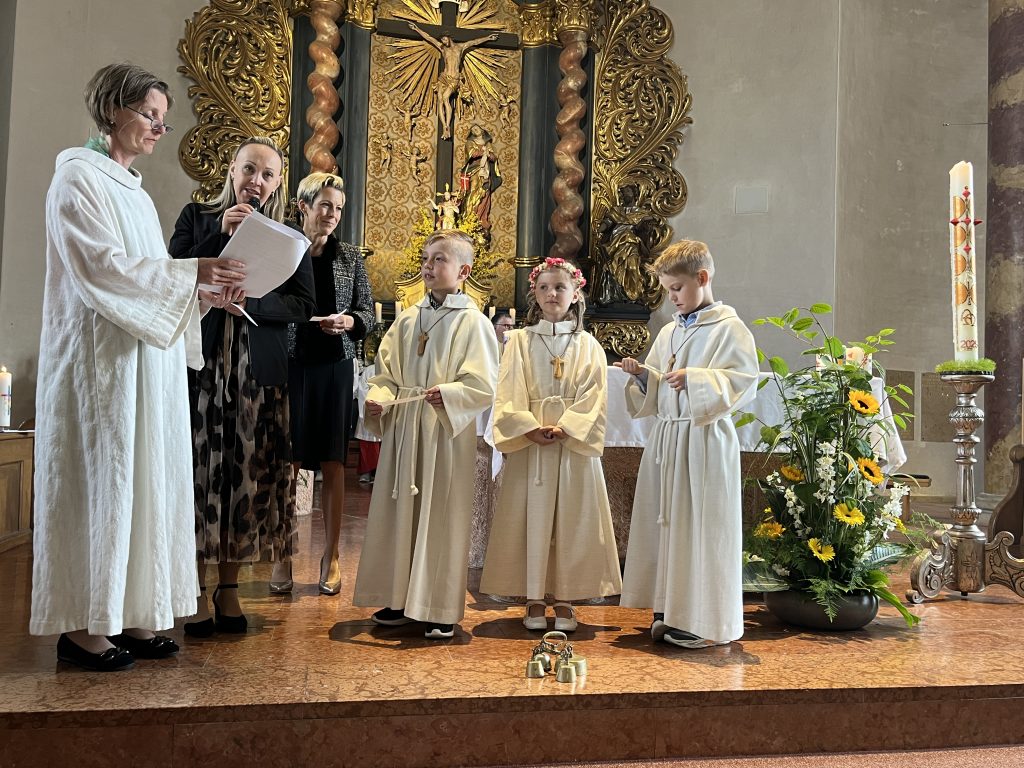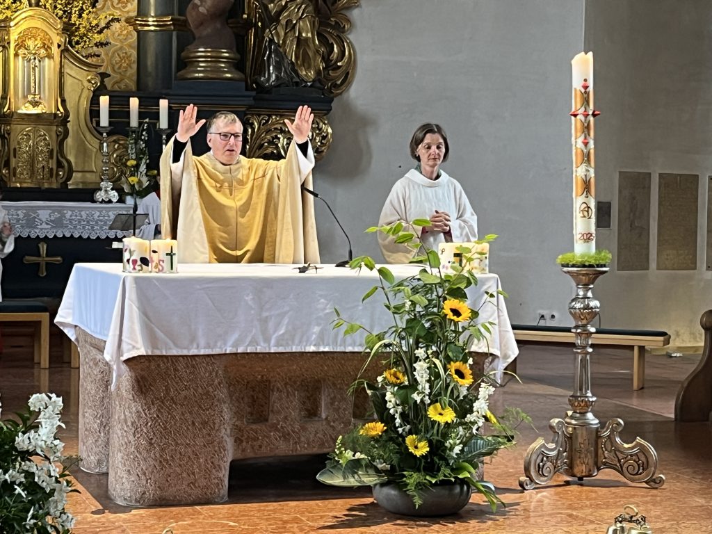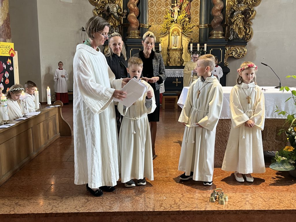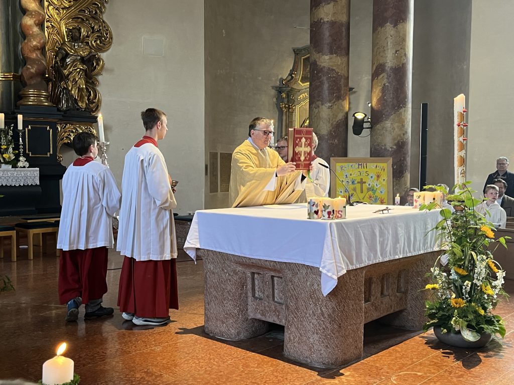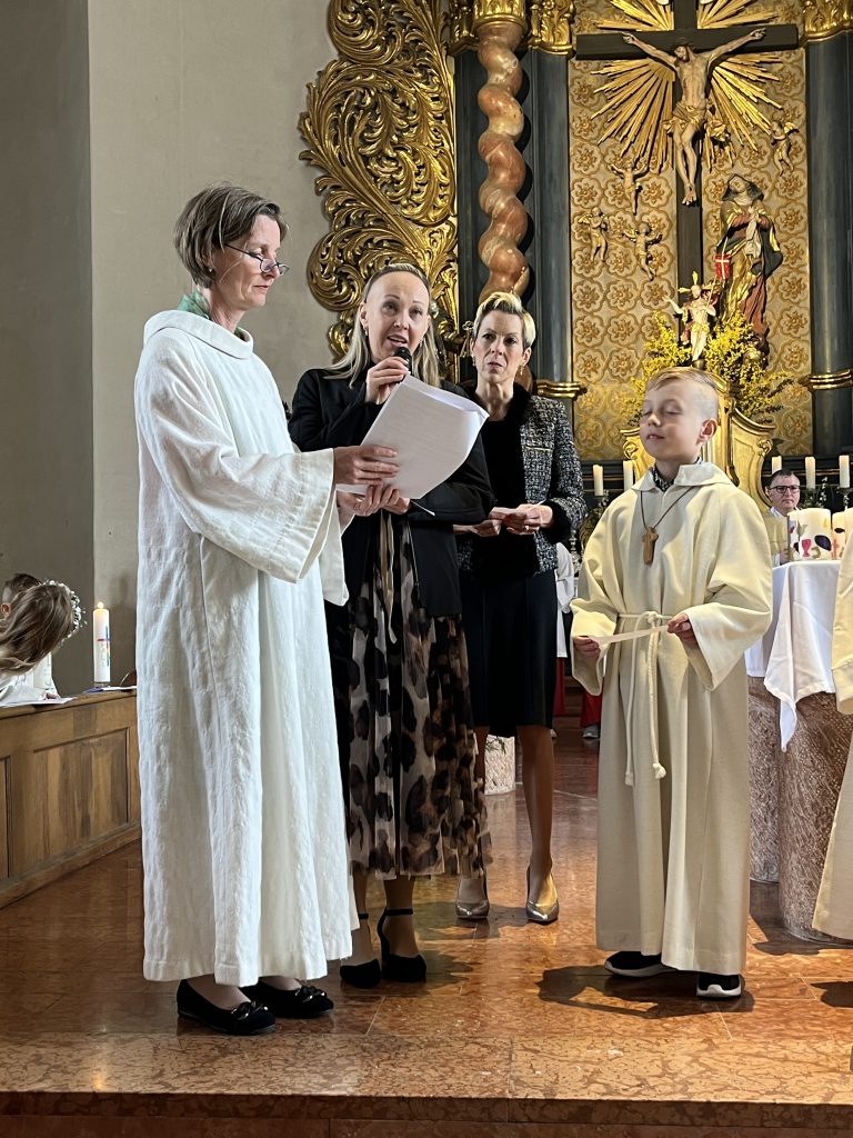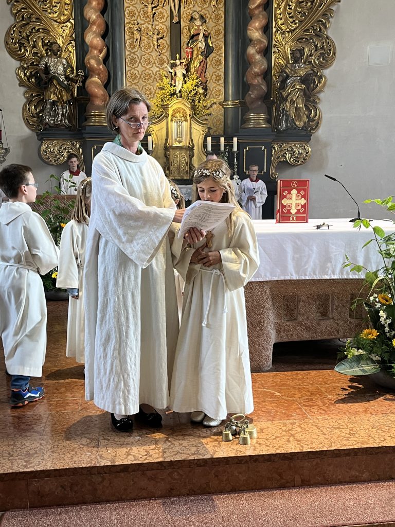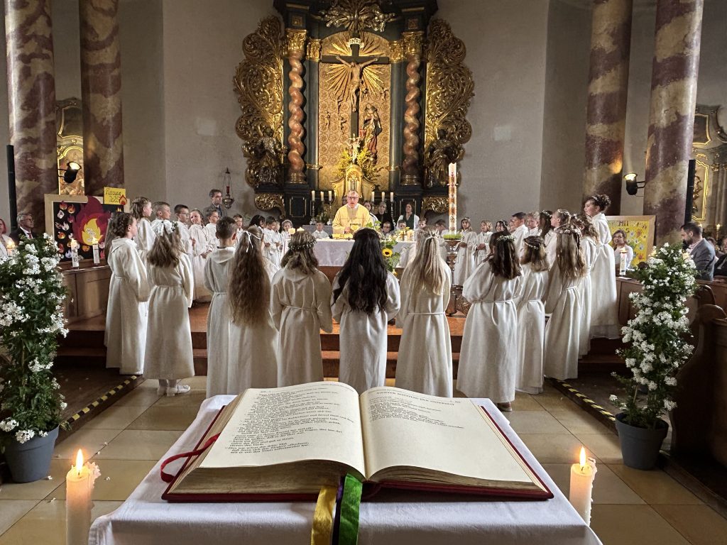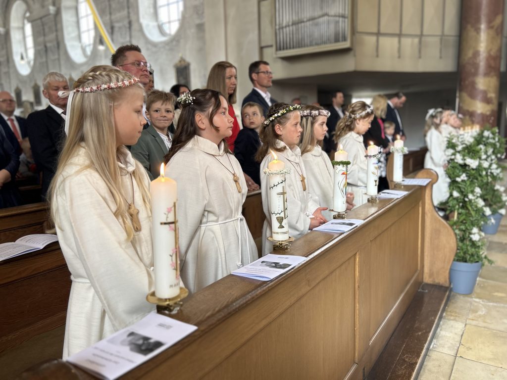 Nachdem die Kommunionkinder schon in der Feier des Letzten Abendmahles am Gründonnerstag zum ersten mal den Leib Christi in der heiligen Kommunion empfangen haben, durfte am 18. Mai richtig groß gefeiert werden. Mit Kommunionkerze und dem weißen Taufkleid zogen die Kinder in die Vituskirche von Burglengenfeld ein. Der feierliche Gottesdienst wurde von Gemeindereferentin Bernadette Biller vorbereitet und durch den Kirchenchor St. Vitus unter der Leitung von Hubert Zaindl musikalisch gestaltet. Dekan Michael Hirmer bedankte sich am Ende des Gottesdienstes bei allen, die die Kinder auf den Empfang der Eucharistie vorbereitet hatten.