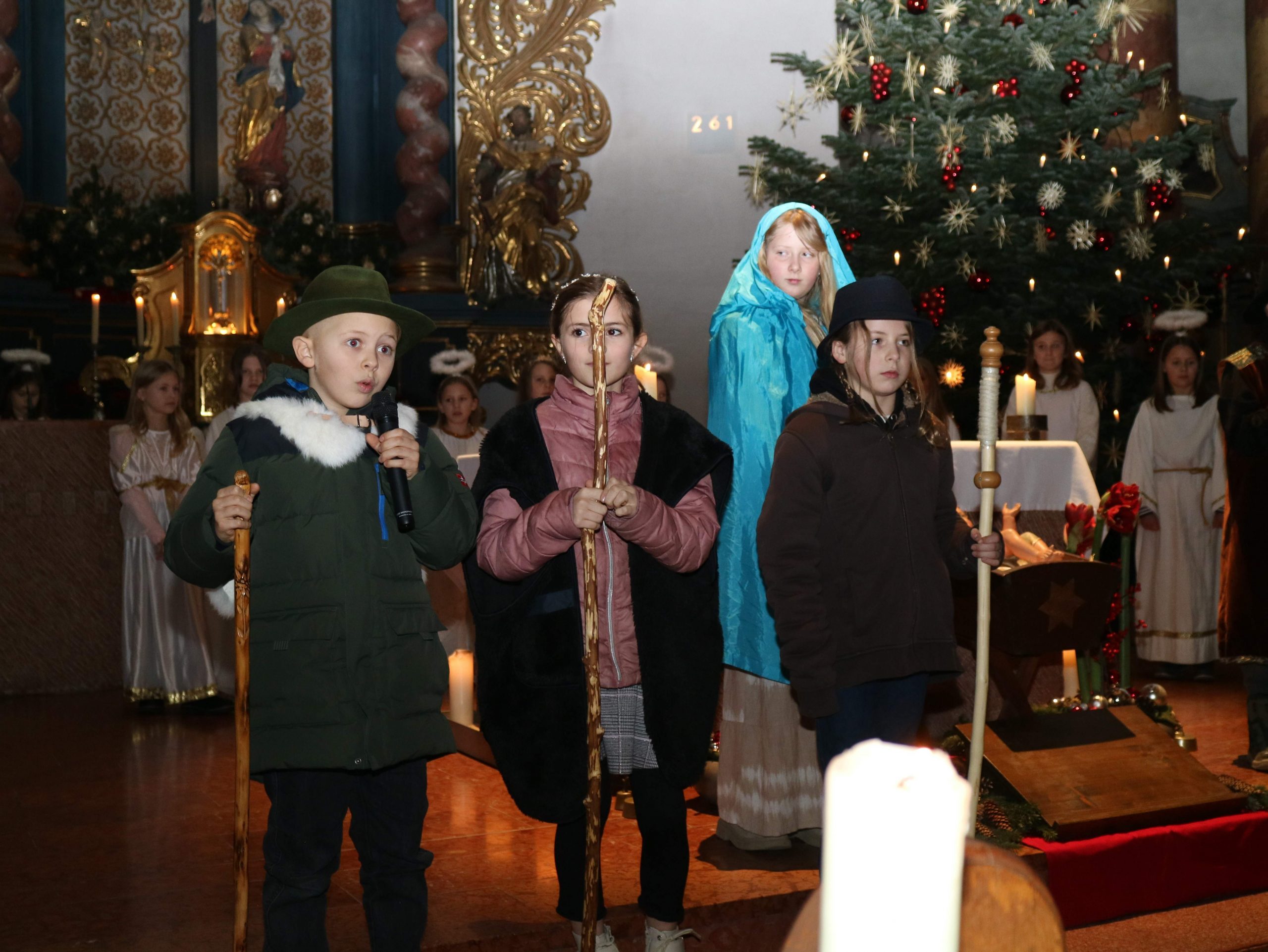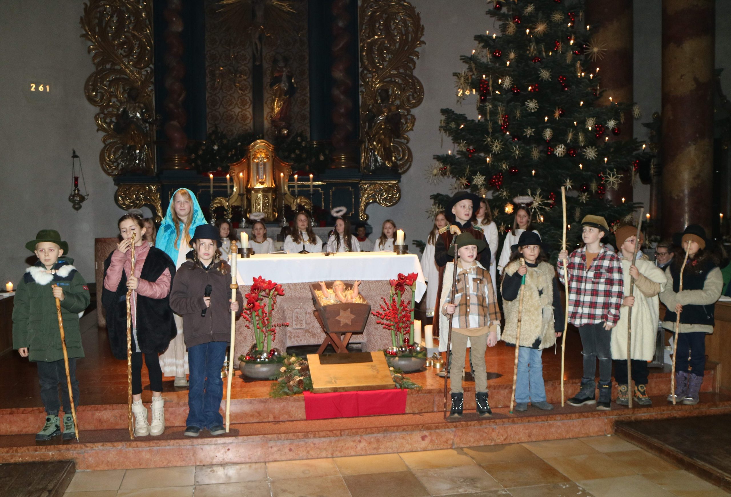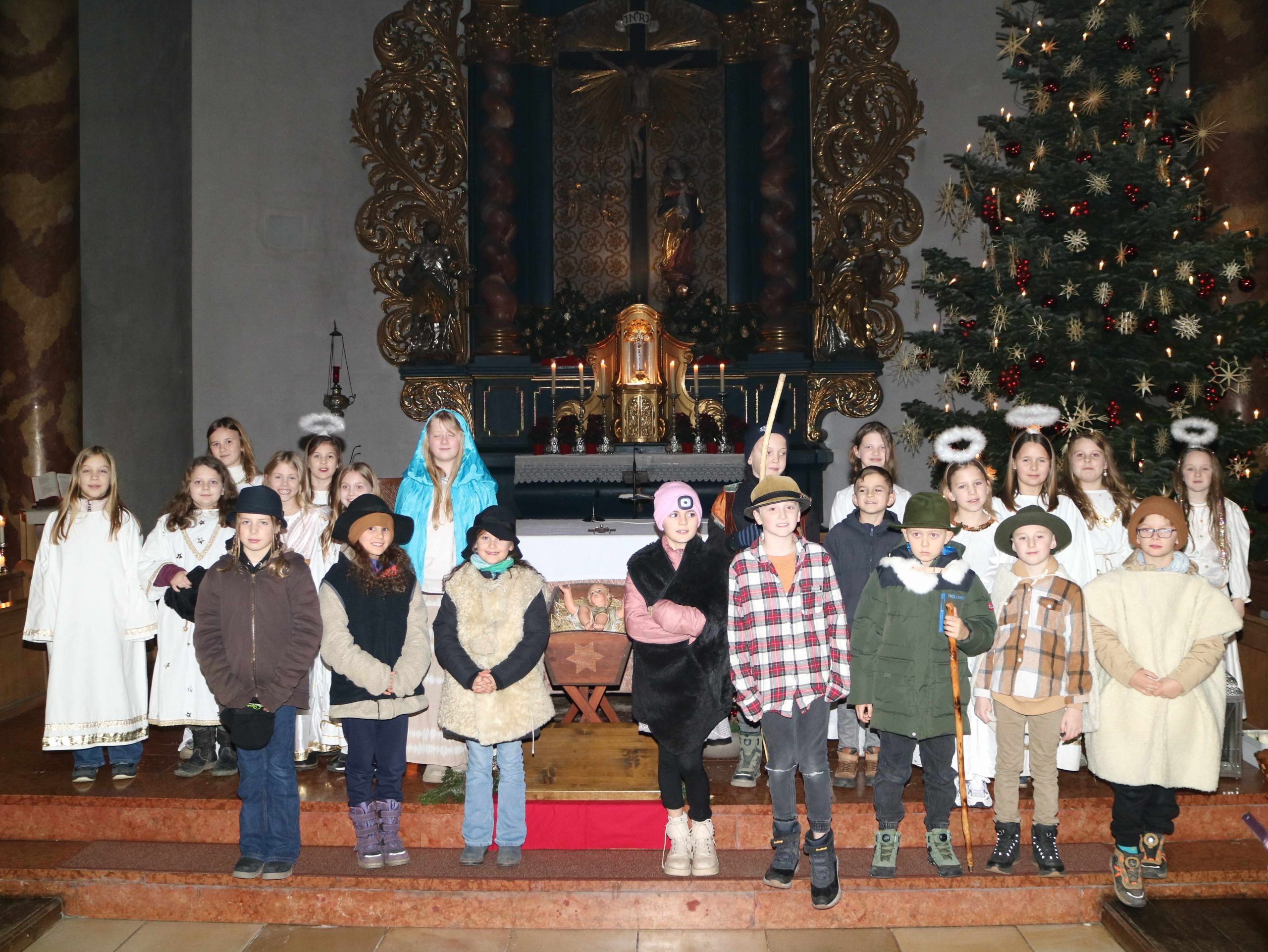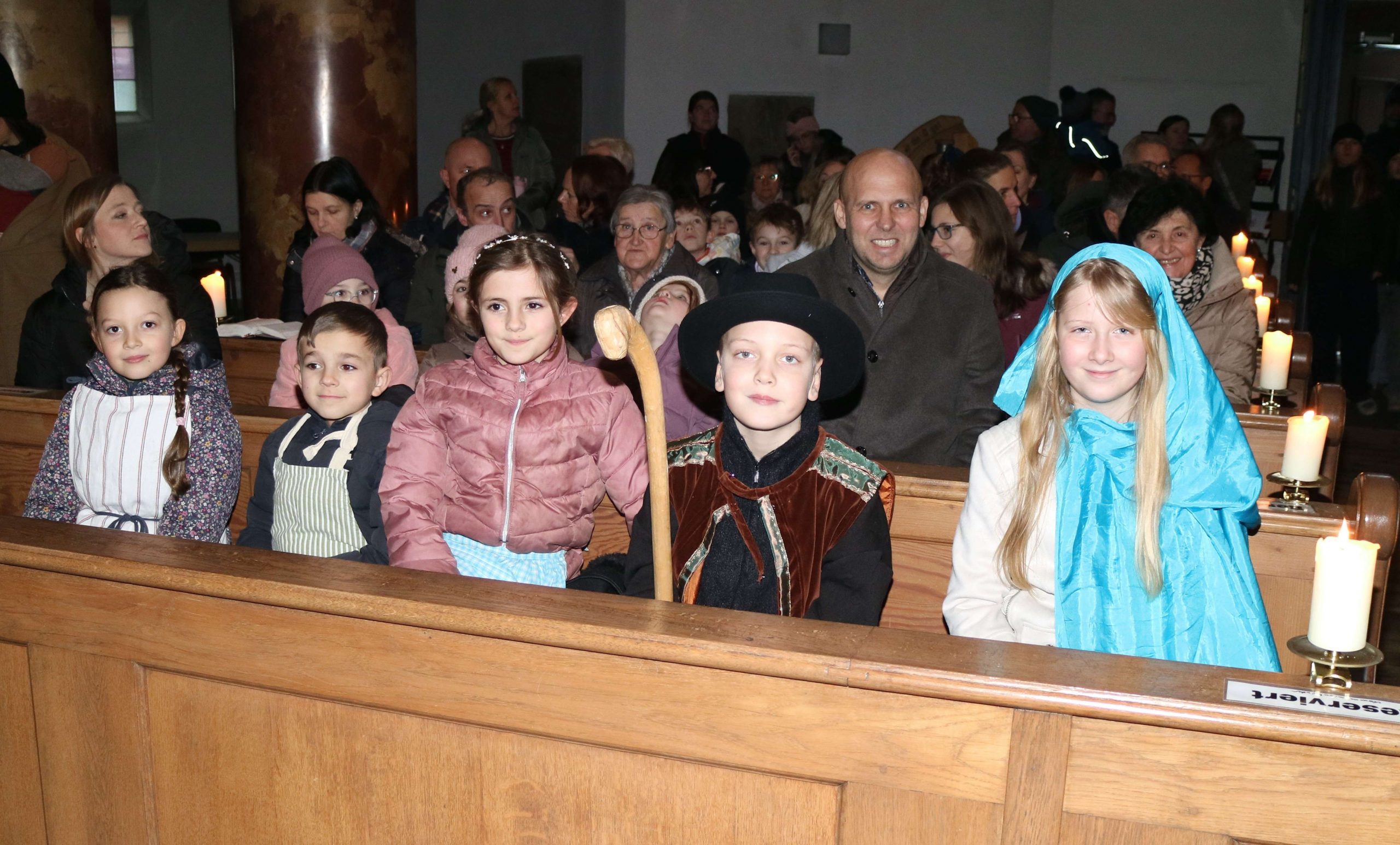 Am 24. Dezember um 16.00 war die Kirche St. Vitus bis auf den letzten Platz gefüllt, als die Kommunionkinder und Firmlinge das traditionelle Krippenspiel in der Andacht für Kinder gestalteten. Mit viel Begeisterung, Lampenfieber und Herzblut erzählten die jungen Mitwirkenden die Geschichte von Jesu Geburt – in liebevoll vorbereiteten Kostümen und mit eindrucksvollen Texten.