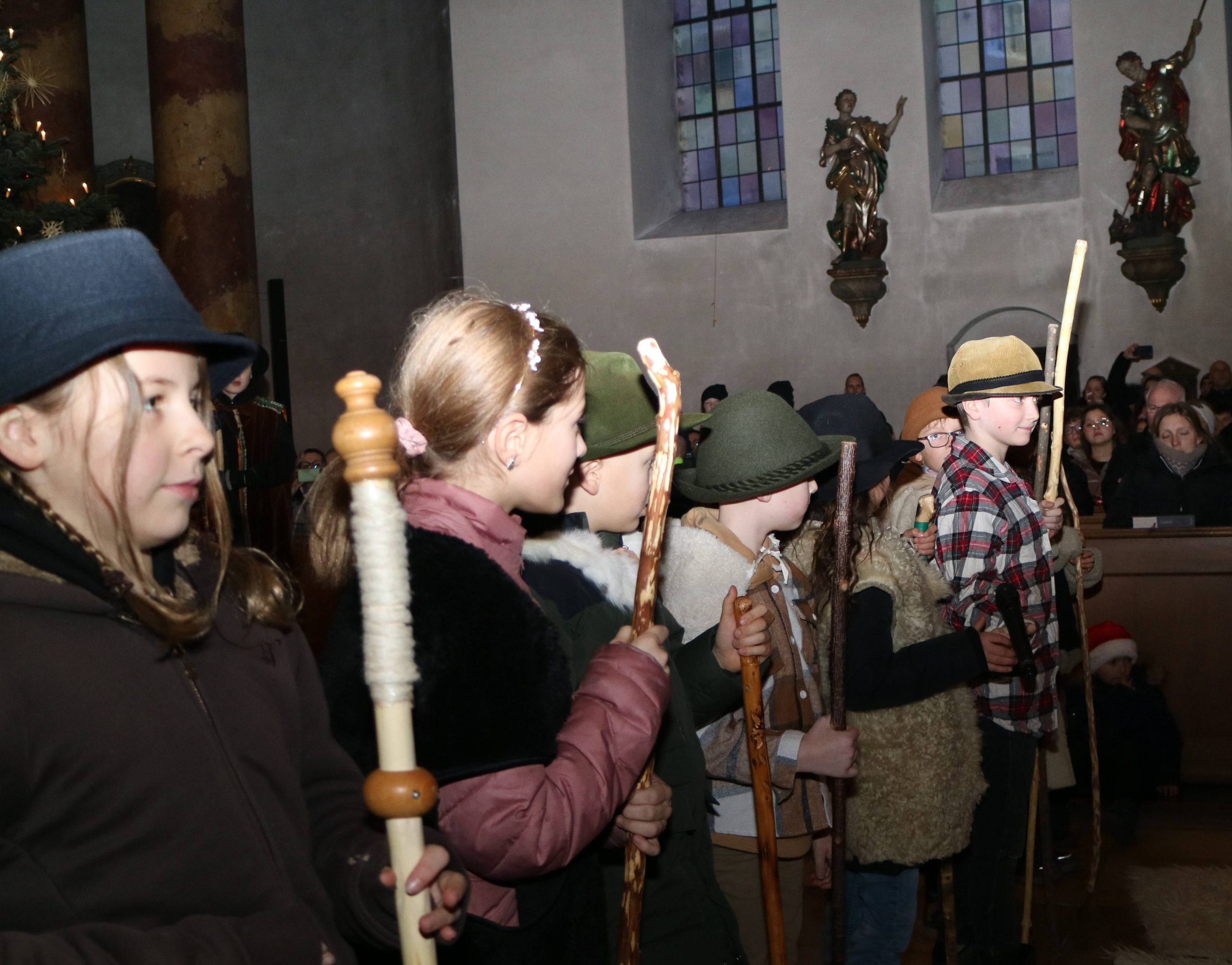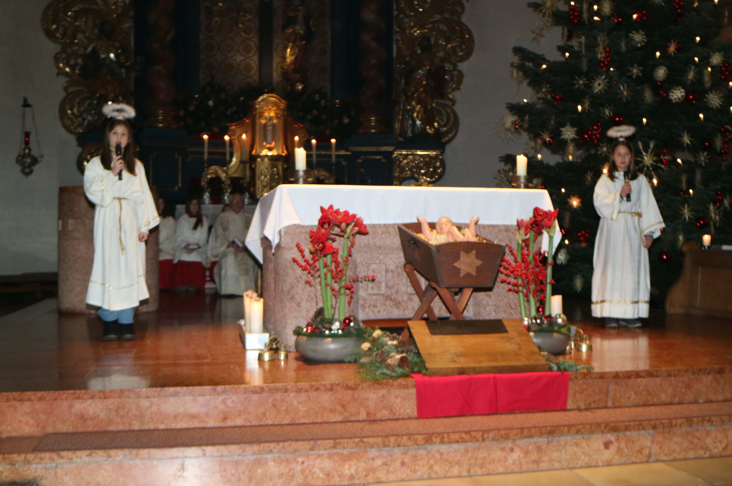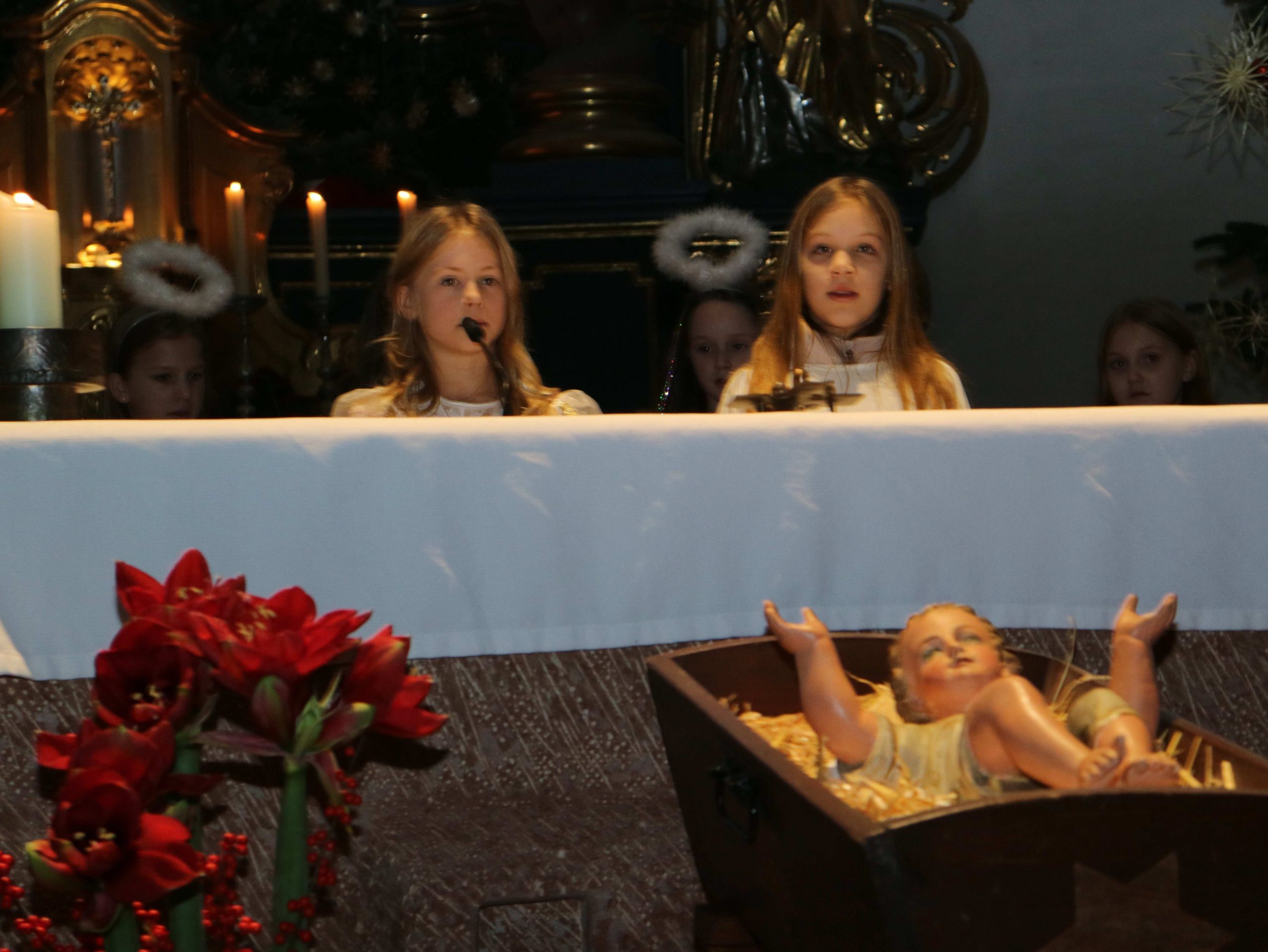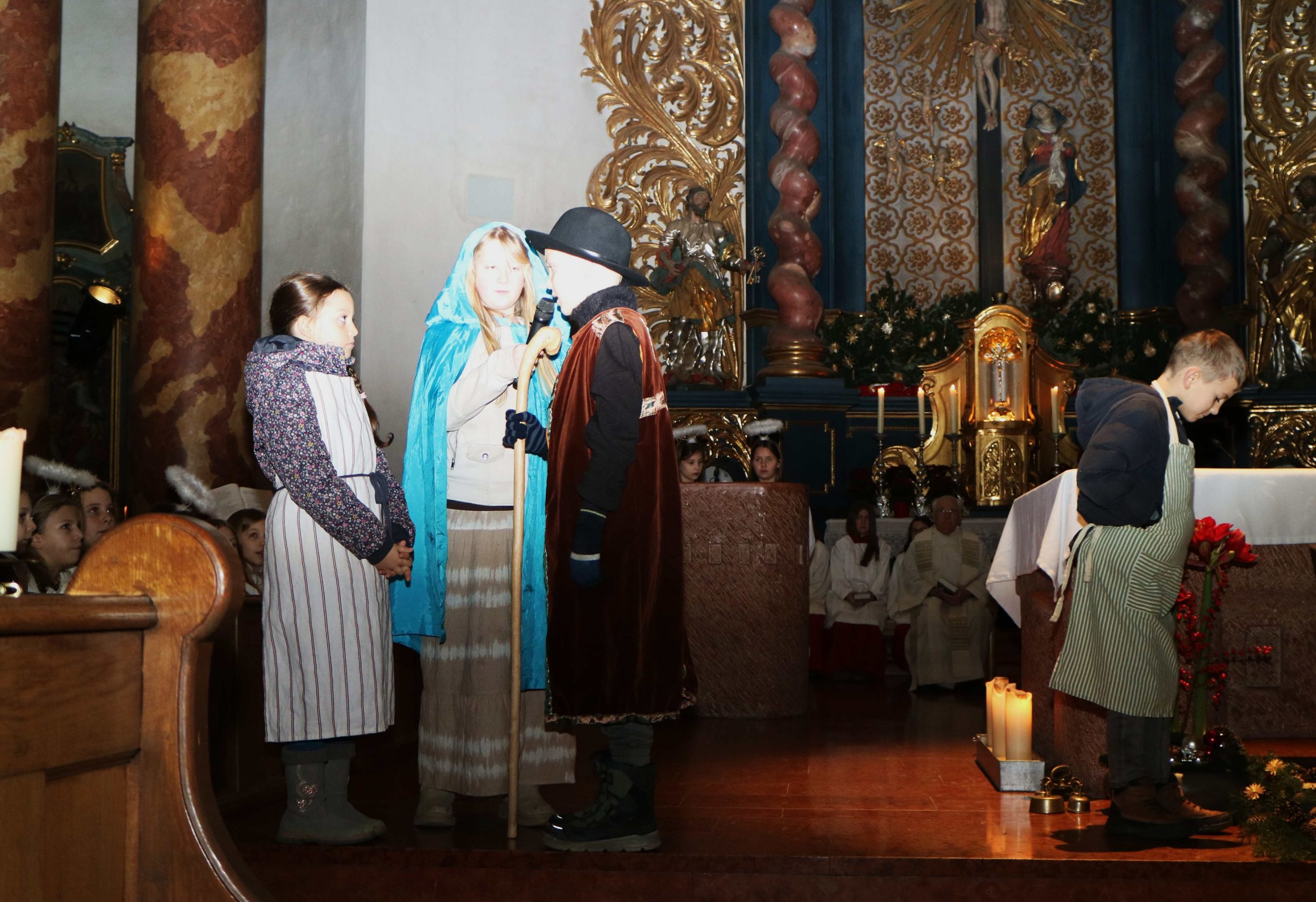 Am 24. Dezember um 16.00 war die Kirche St. Vitus bis auf den letzten Platz gefüllt, als die Kommunionkinder und Firmlinge das traditionelle Krippenspiel in der Andacht für Kinder gestalteten. Mit viel Begeisterung, Lampenfieber und Herzblut erzählten die jungen Mitwirkenden die Geschichte von Jesu Geburt – in liebevoll vorbereiteten Kostümen und mit eindrucksvollen Texten.