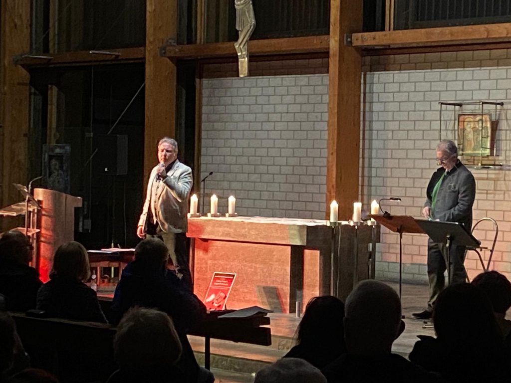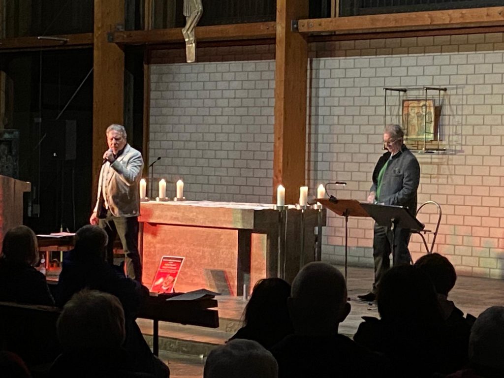 Es war eine merkwürdige Begegnung als der die „Heilige Nacht“ des Volksdichters Ludwig Thoma auf Gospel Musik traf. Doch es passte wunderbar zusammen. Die volkstümliche Erzählen der „Heiligen Nacht“, vorgetragen und ergänzt durch Klaus Sauberbeck, verdeutlichten und vertiefen die christlichen Gospel-Lieder, die Reiner Kowalski interpretierte. – Passend wurde dieser spirituelle Leckerbissen in der Pfarrkirche St. Josef Burglengenfeld vorgetragen.