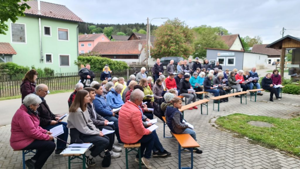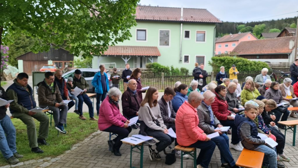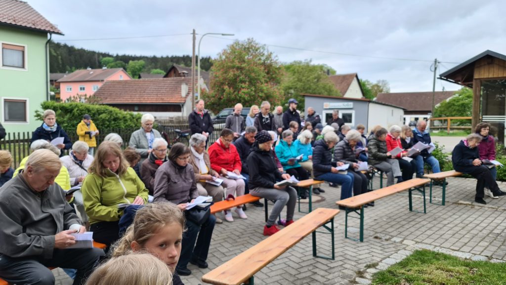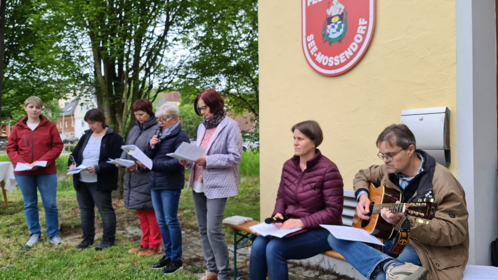 Der Mai gilt in der katholischen Kirche als Marienmonat, denn Maria bedeutet als  die Wichtigste unter allen Heiligen.  Darum wird Maria in besonderer Weise verehrt. Auch der Frauenbund Burglengenfeld hat seine Maiandacht in See  fest in seiner Jahresplanung datiert. Letzten Freitag gestaltete der Frauenbund seine Maiandacht unter dem Motto „Getragen vom Glauben“  in See vor dem Feuerwehrhaus. Veronika Spandl vom Vorstandsteam begrüßte die über 80 Mitfeiernden, unter ihnen Dekan Michael Hirmer, Kaplan Babu und Ruhestandspfarrer Thomas Senft. Das erweiterte Vorstandsteam las die vorgegebenen Texte, wobei auch die Besucher mit eingebunden waren. Mit Marienliedern gelang eine stimmungsvolle Andacht, die von  Pastoralreferenten Konrad Kraus musikalisch begleitetet wurde. Ein   besonderer Dank galt der FFW Mossendorf/See für das Bereitstellen des Feuerwehrhauses.