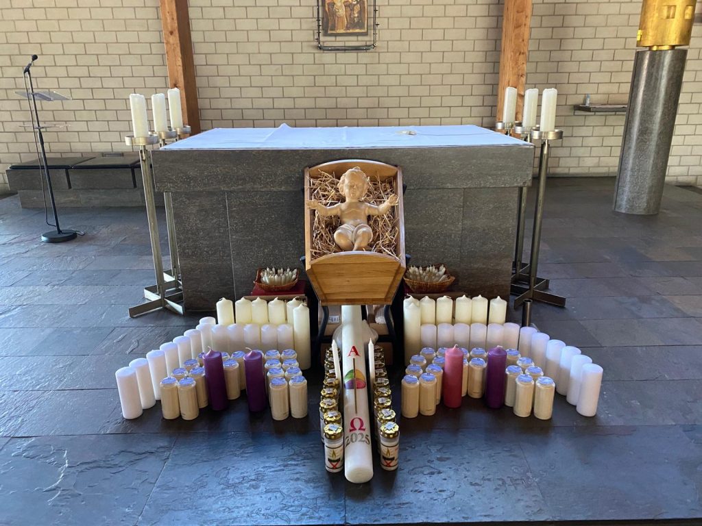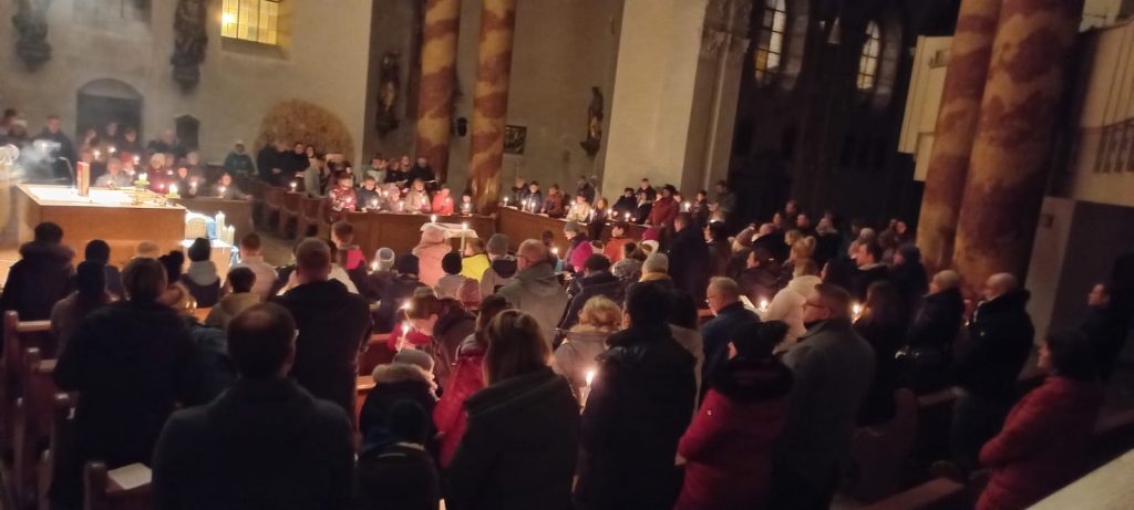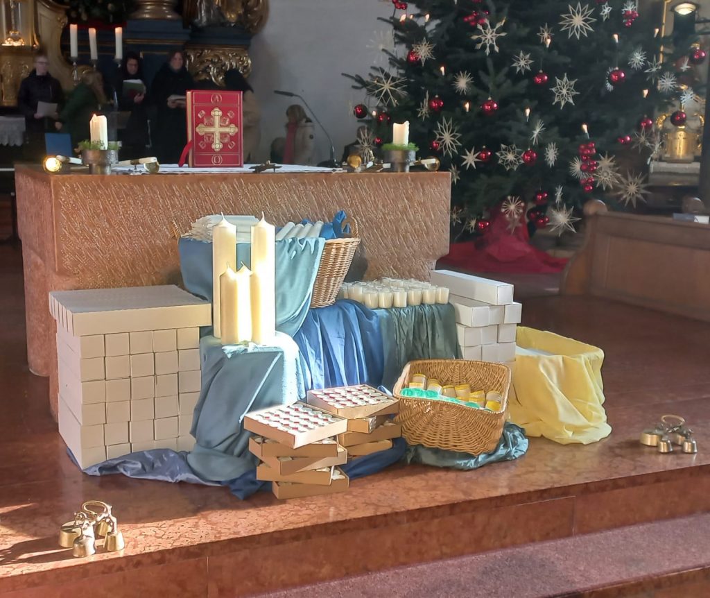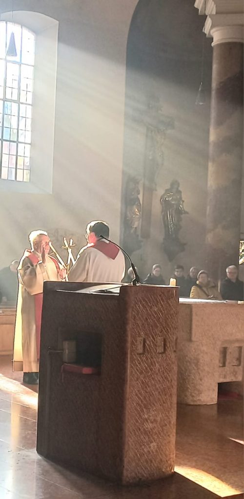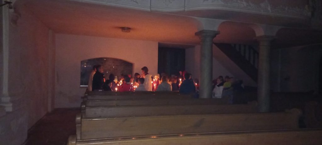 Gottesdienst mit Kommunionkinder. Kerzenweihe und Blasiussegen