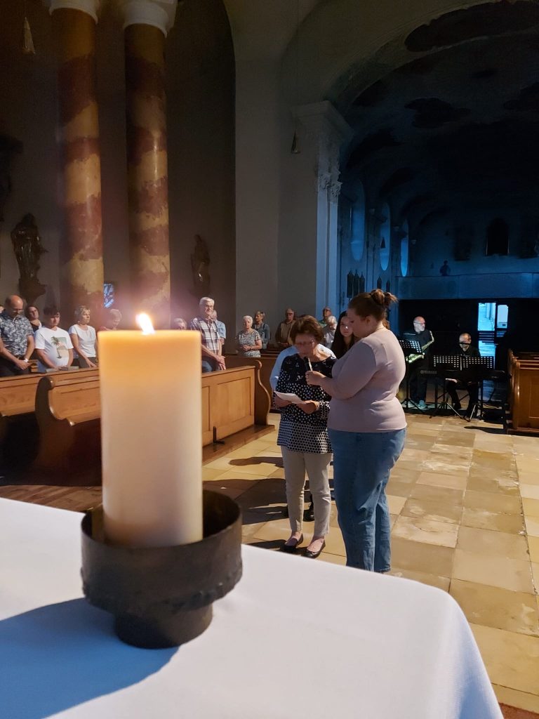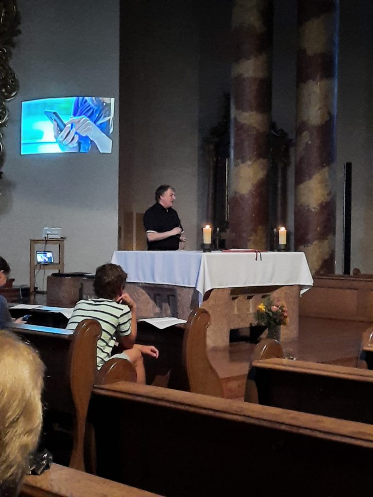 Bei spritzigen Klängen des Saxofons durften die Mitfeiernden etwas machen, was bei einem Gottesdienst normalerweise verpönt ist: Das Handy benützen. „Schreiben Sie einen lieben Menschen, der ihnen Stütze und Hilfe im Leben ist, eine schöne Kurznachricht.“, schmunzelte der Dekan, als er die Mitfeiernden einlud einen digitalen Segenspruch an liebgewonnene Menschen zu schreiben.
