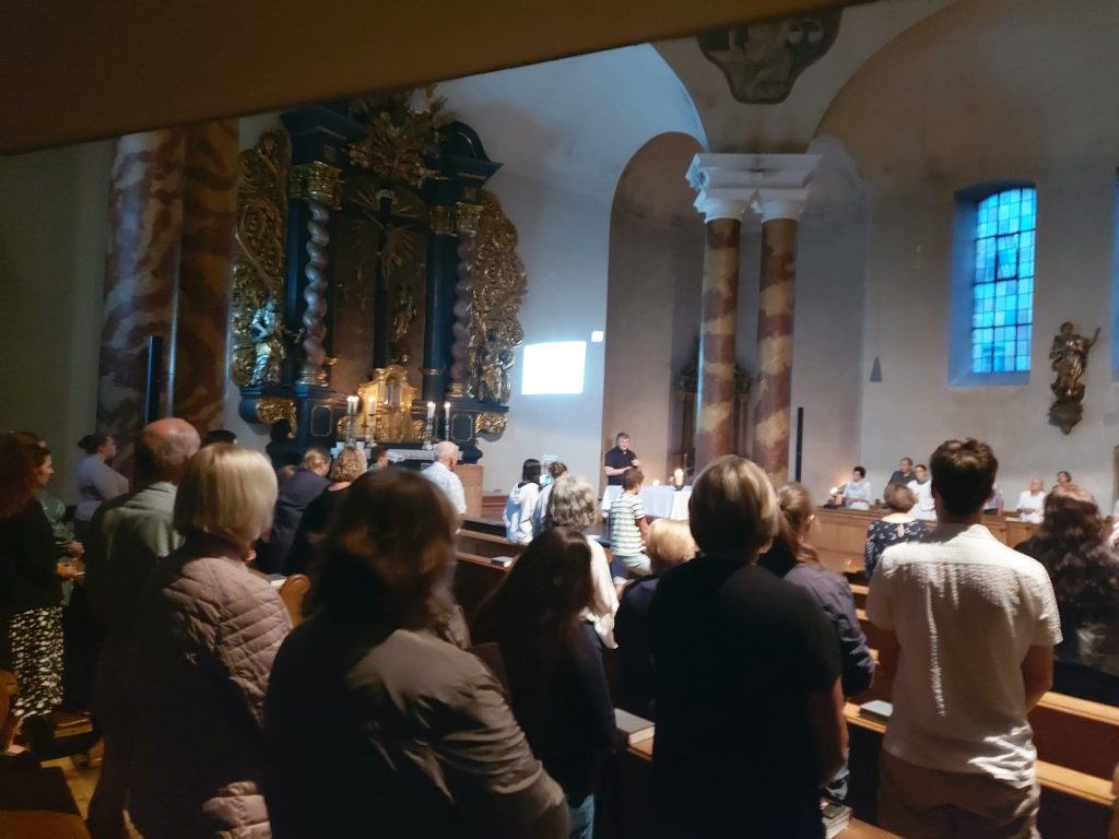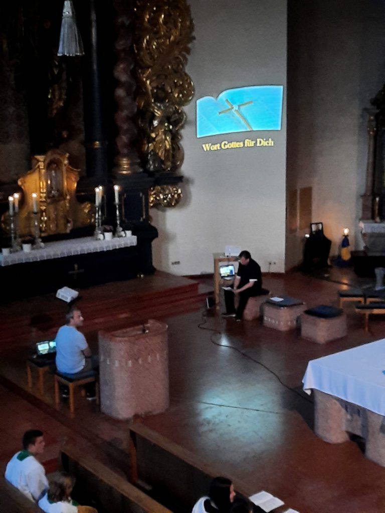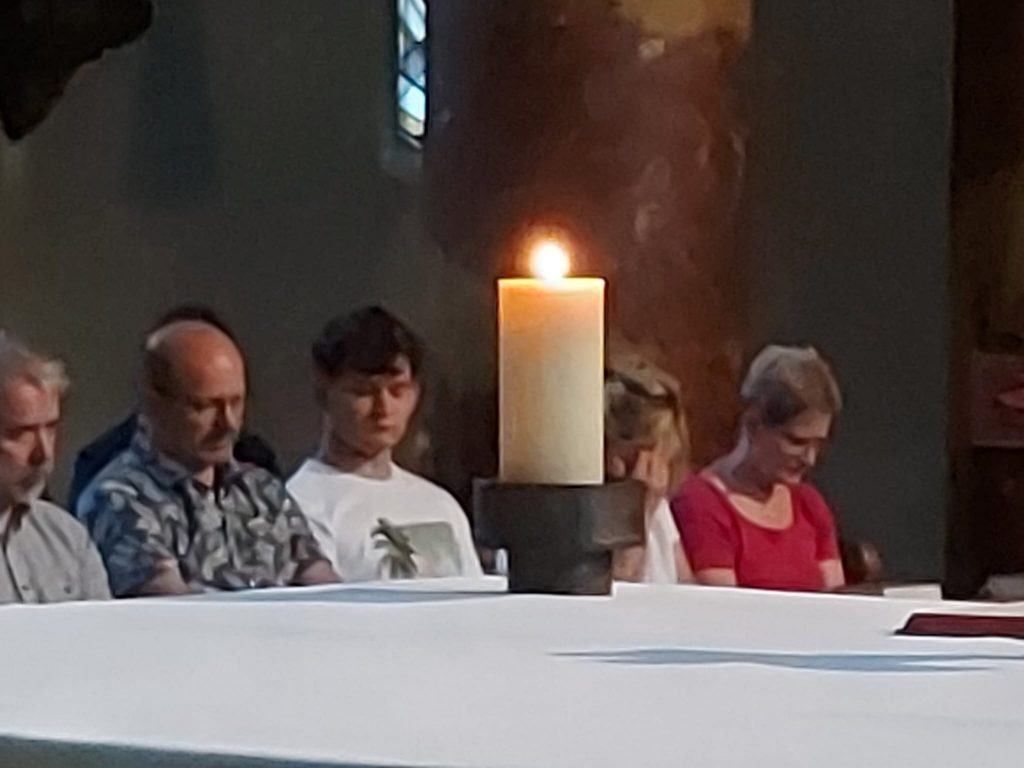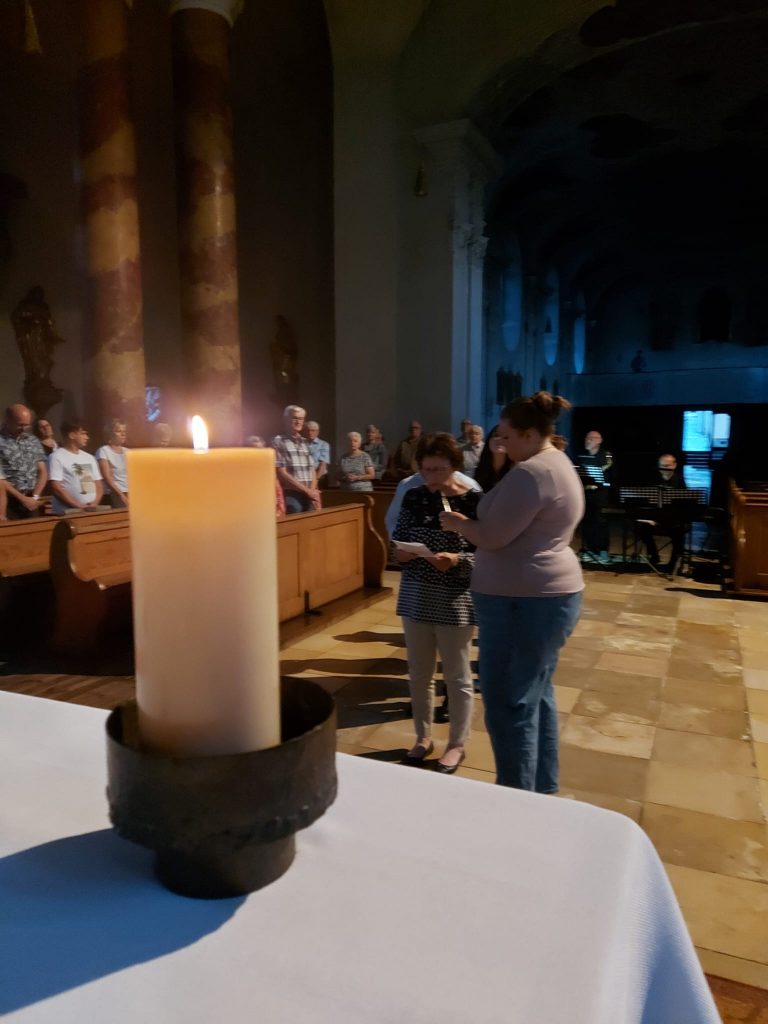 Anders war auch der Wortgottesdienst. Mitfeiernde aus dem Publikum standen auf und sprachen hoffnungsvolle Bibelzitate in den Raum. Über diese konnten die Gottesdienstbesucher in einer langen Stille nachdenken.