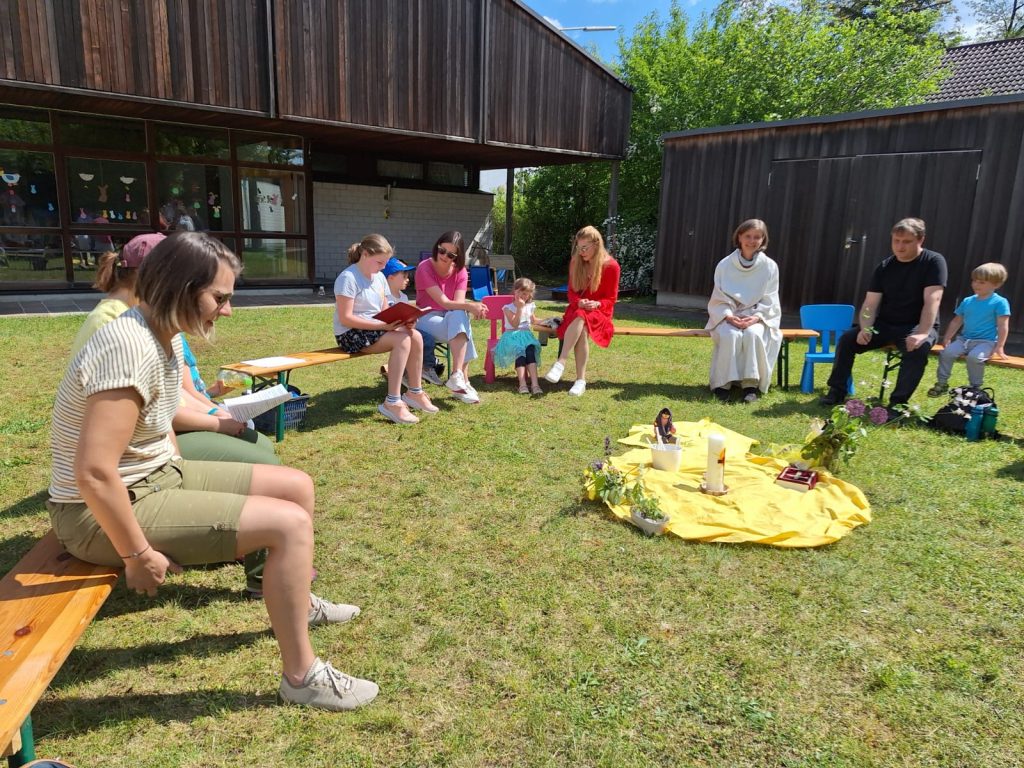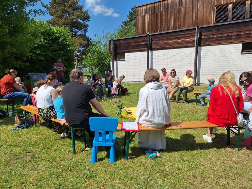 Natürlich fand am Muttertag eine Kinderkirche statt. Besonderer Höhepunkt des Gottesdienstes, der im Pfarrgarten von St. Josef stattfand, war die Kindersegnung. Die Mütter durften ihre Kinder segnen und umgekehrt. 🙂