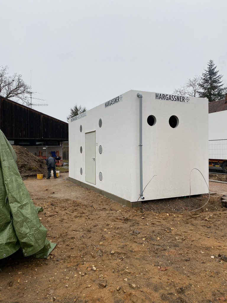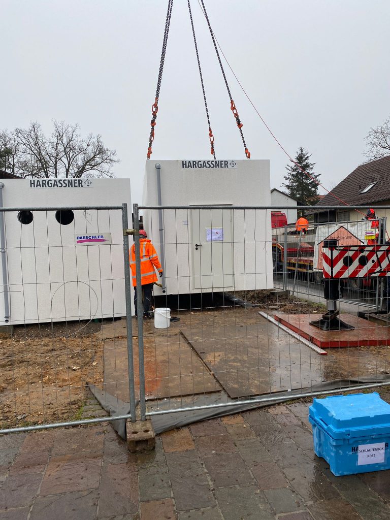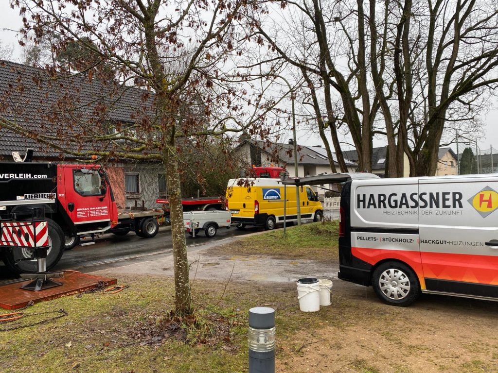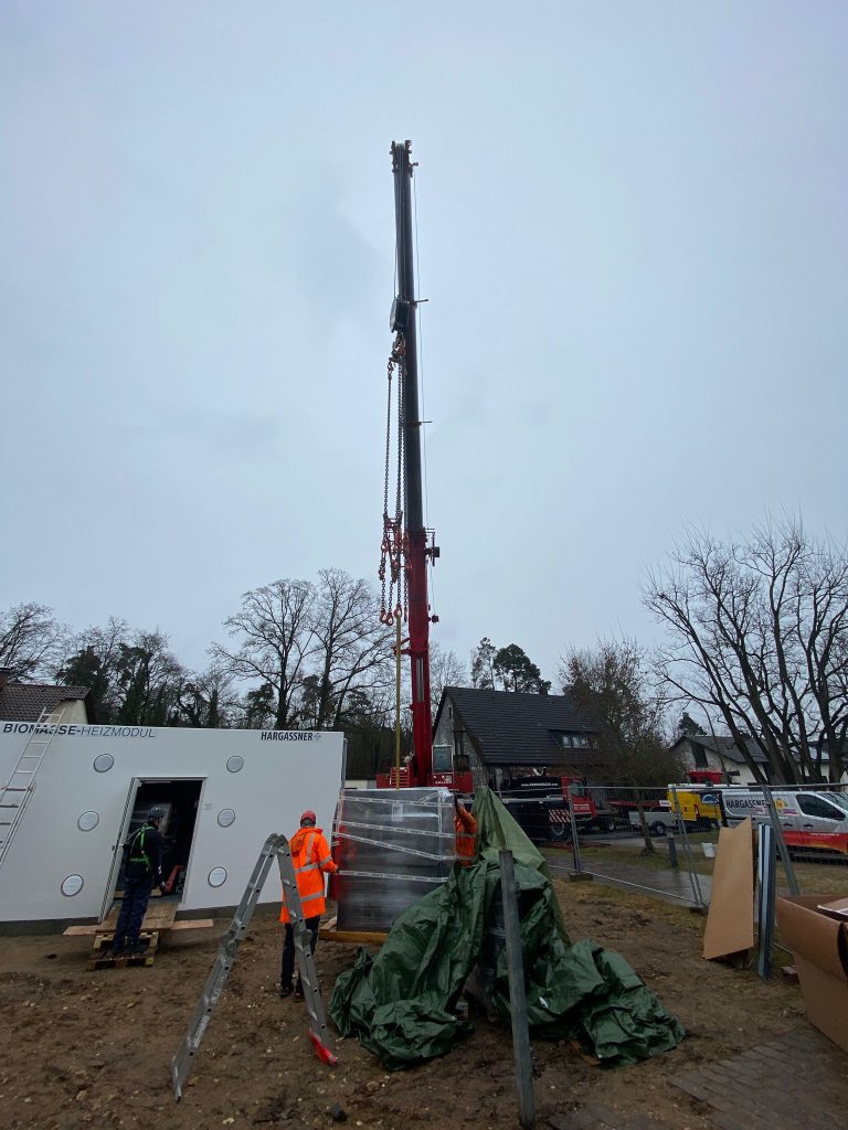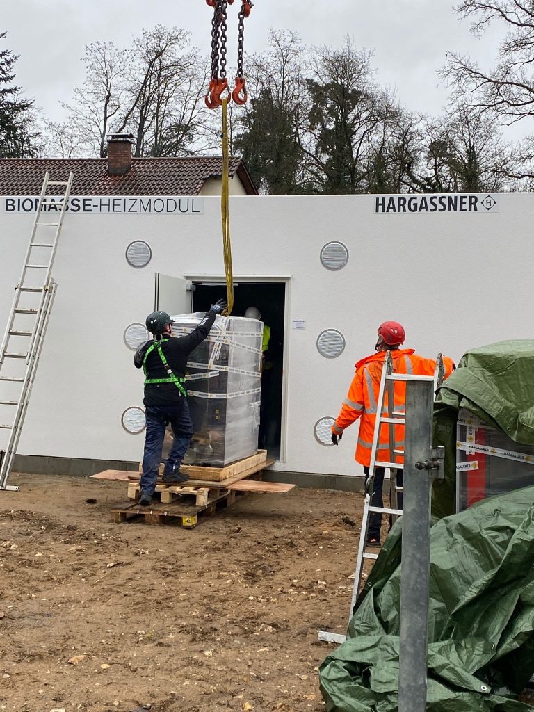 Das Pastoralzentrum St. Josef mit Kirche, Pfarrheim und ehemaliger Pfarrerwohnung ist vor knapp 50 Jahre erbaut worden. Schritt für Schritt soll es auf den neusten Stand der Technik gebracht werden. Derzeit wird im Pfarrergarten eine neue Pellet-Heizung errichtet. Dazu wurden schon Rohleitungen ins Pfarrheim gelegt. Nun wurden zwei Container errichtet, in denen die Heizungsanlage und ein Pellet-Lager ihren Platz finden soll. Die Heizungsanlage wird großzügig durch den Staat und das Bistum bezuschusst, so dass vergleichsweise geringe Kosten auf die Kirchenstiftung St. Josef zukommen.