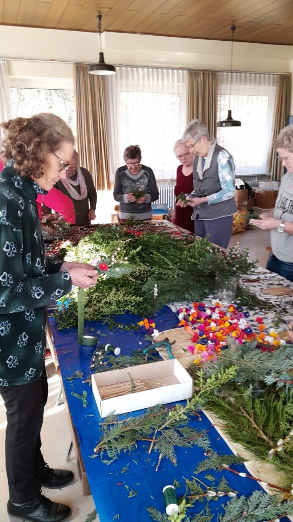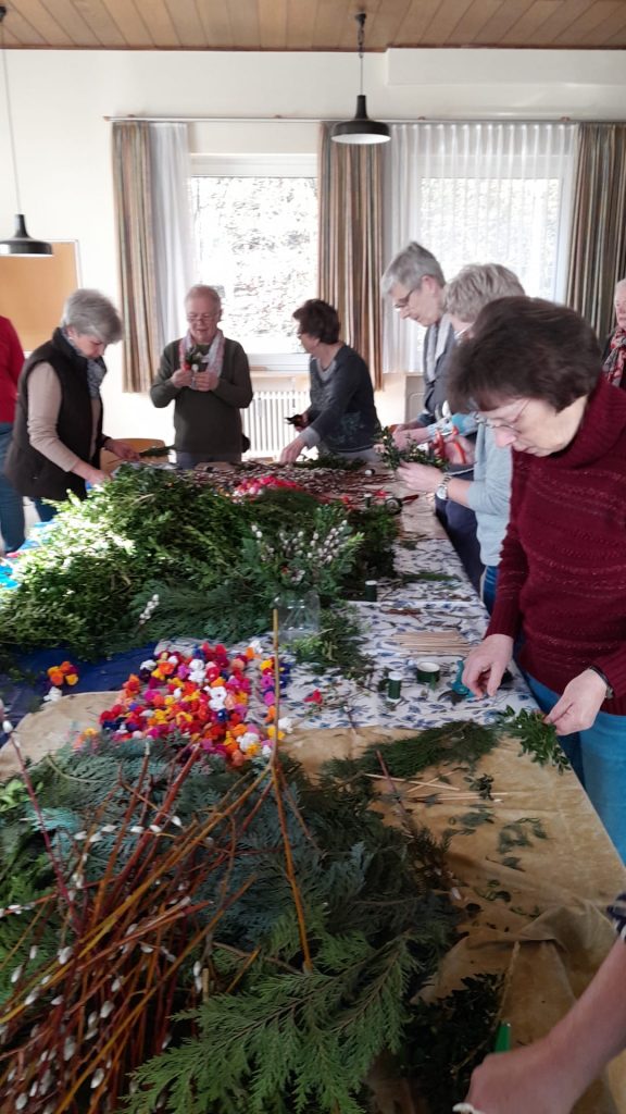 Der katholische Frauenbund der Stadtkirche Burglengenfeld ist schon seit Monaten beschäftigt genügend Palmbuschen zu binden. Denn diese müssen schon vor dem Palmsonntag für den Verkauf fertig sein. Schon jetzt können vor und nach den Gottesdiensten Palmbuschen erworben werden. Diese werden dann am Palmsonntag gesegnet, um danach die Kreuze in den Wohnungen zu zieren.