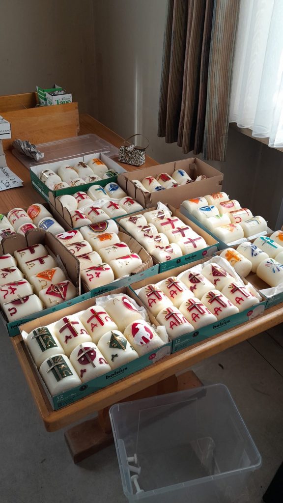 Ein weiterer Brauch ist das Vierzieren von Osterkerzen. Sie erinnern daran, dass Jesus Christus den Tod bezwungen hat. In der Osternacht entzündet, zeigen die Osterkerzen, dass Gottes Liebe alles im Leben erhellt.