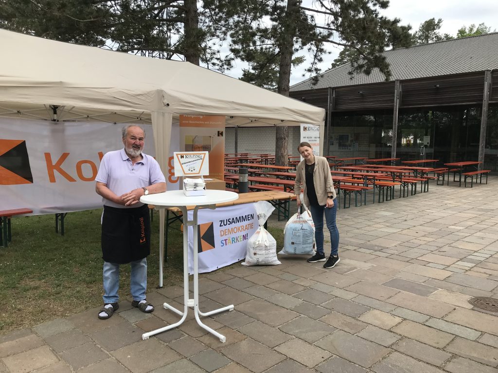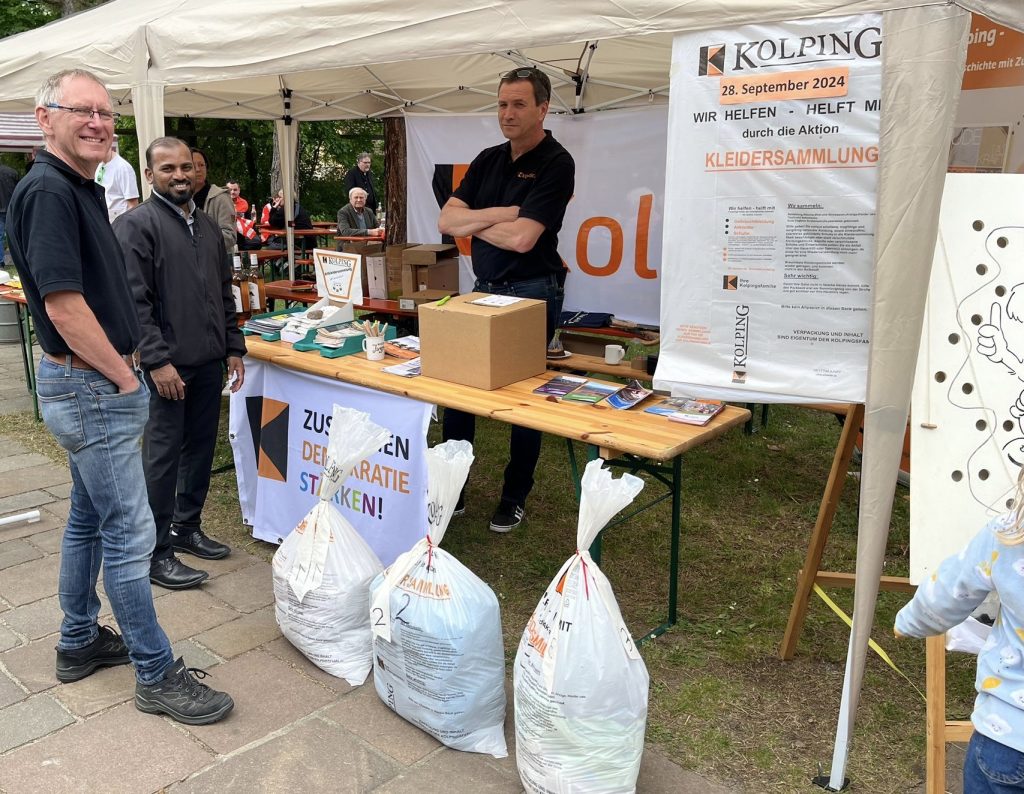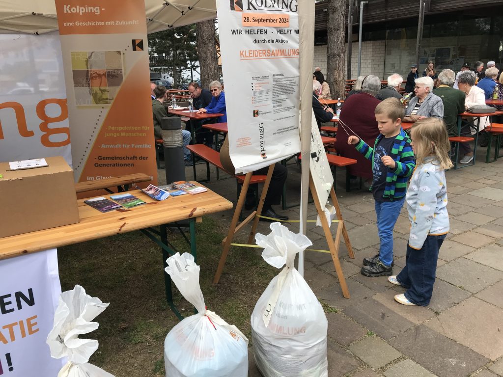 Die Kolpingsfamilie war mit einem Stadt vor Ort. Hier musste das Gewicht von Altkleidersäcken geschätzt werden. Der erste Preis ging an Frau Elisabeth Göttgens .Auf Platz 2 folgte Sebastian Hüttner (Summe 22,3 kg) und auf Platz 3 kam Rudolf Pauer mit 21,5 kg. Die Gewinner bekamen alle einen Regenschirm und Schreibblöcke der Firma Wittmann.