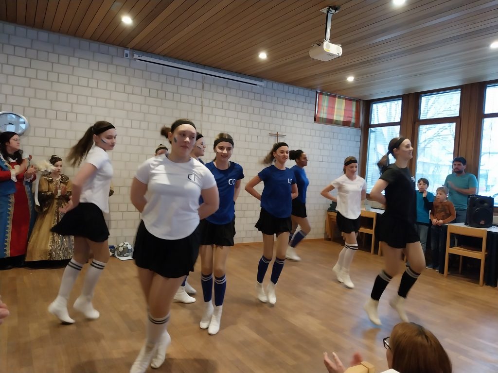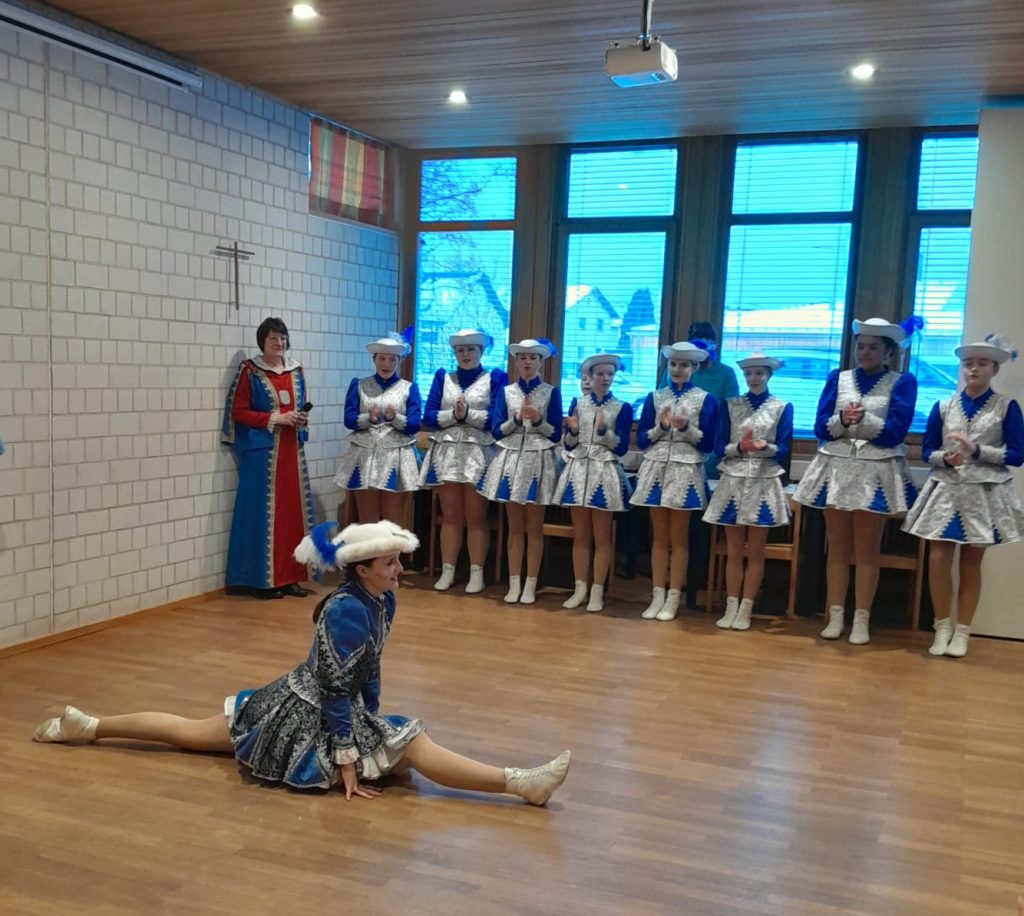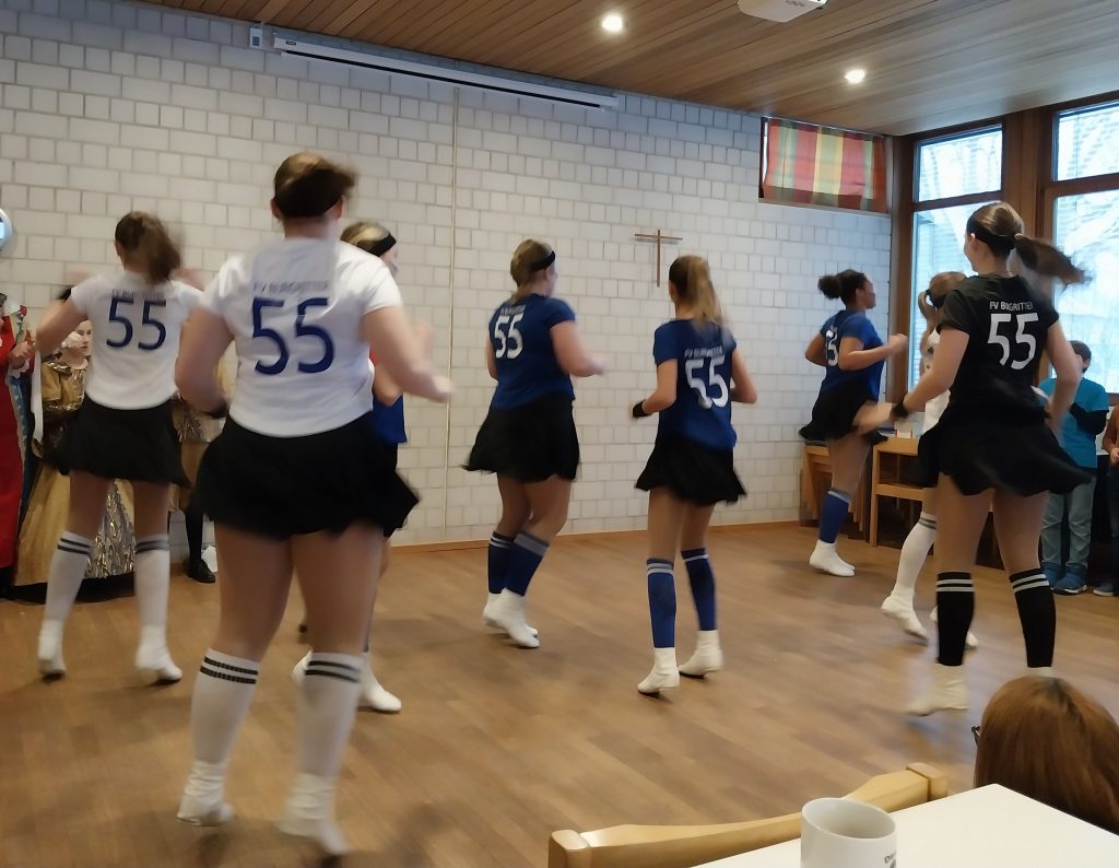 Hoch her ging es beim Seniorencafe Ende Januar: die Prinzengarde der Burglengenfelder Burgritter e.V. waren zu Gast und gaben ihr Bestes! In tollen Kostümen als Tanzmädchen, Fußballerinnen oder Pippi Langstrumpf tanzten sie zu ausgewählter Musik. Buli, Buli, Hallo! Die froh gelaunten Seniorinnen und Senioren kamen aus dem Staunen nicht heraus. Eine tolle Aufführung war das! Für gute Laune sorgten auch die Gedichte von Karin und Evi und natürlich die netten Verkleidungen, die Monika für alle Gäste zur Verfügung stellte.