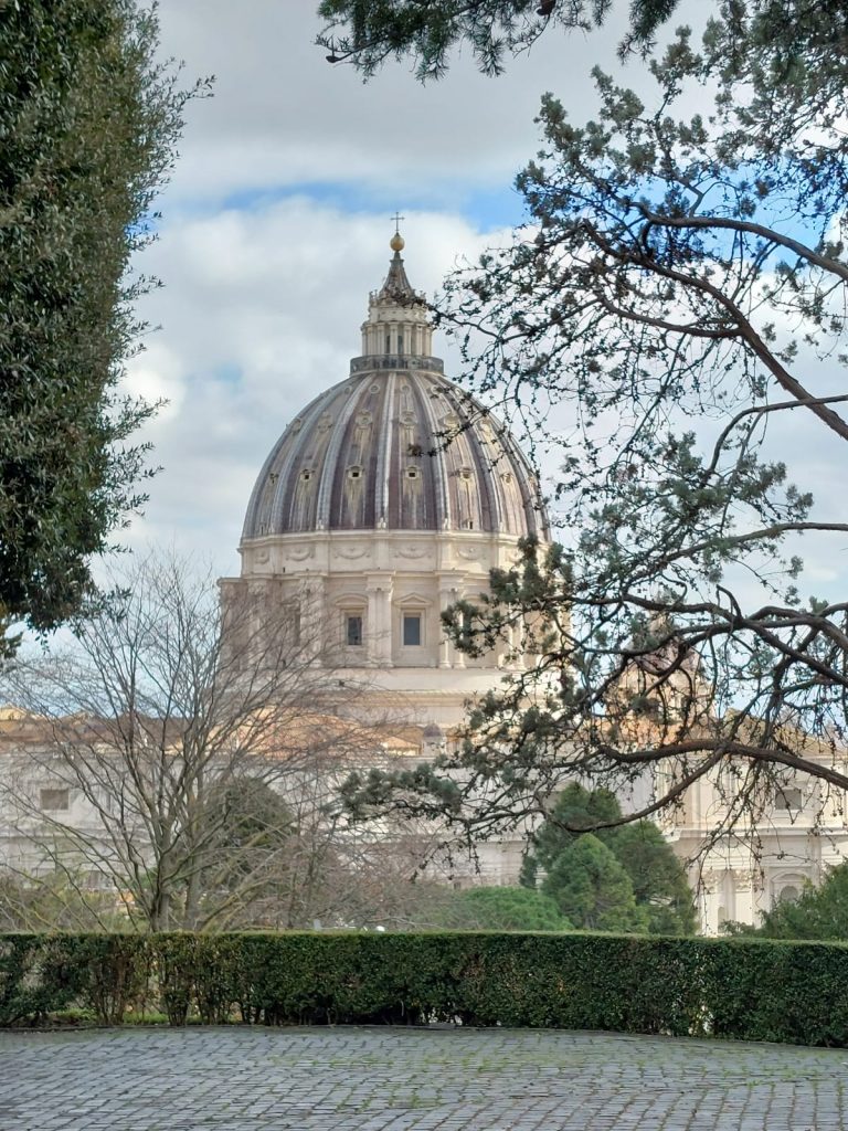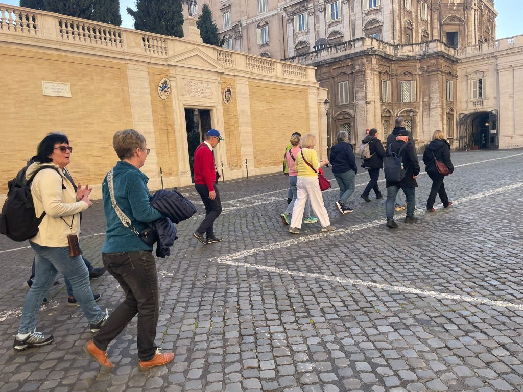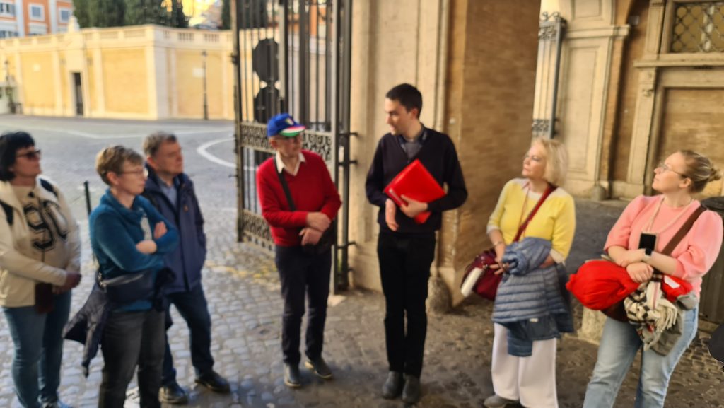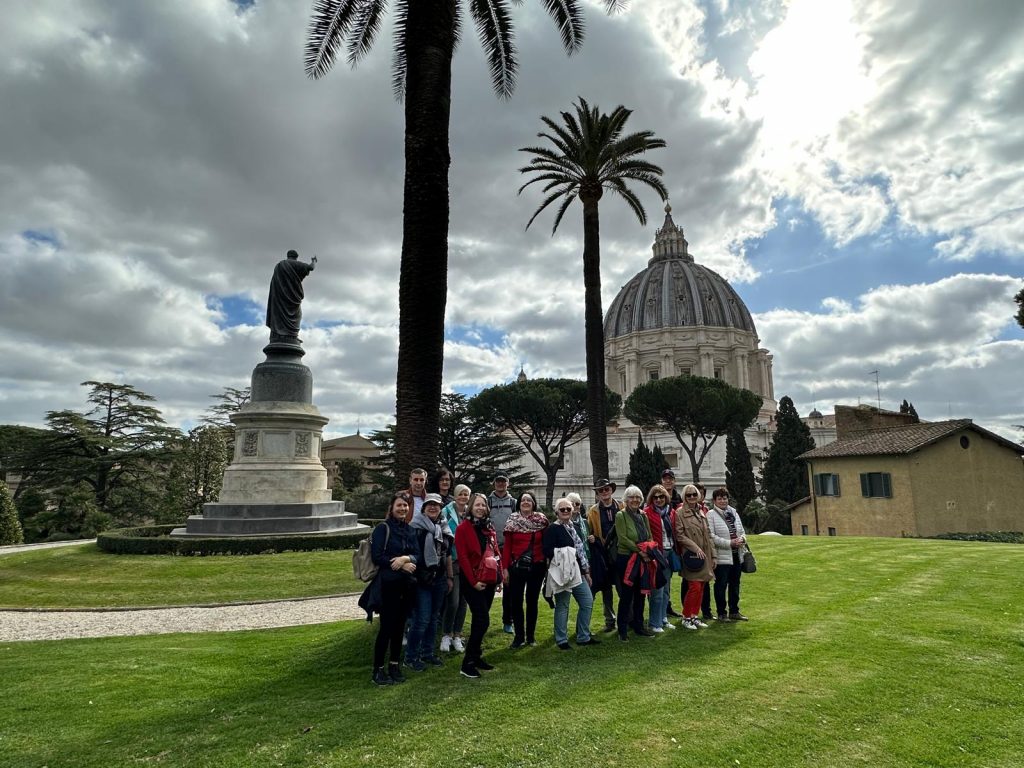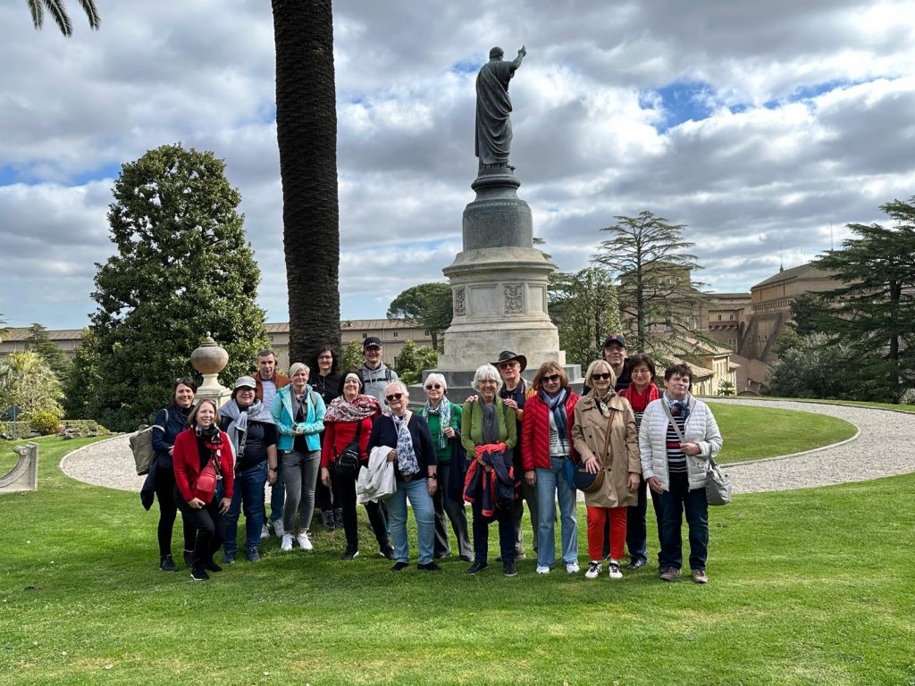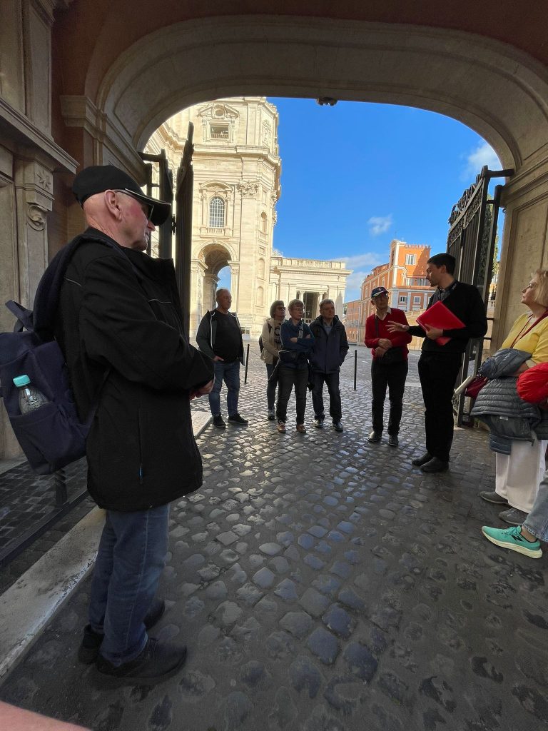 Ein Teil der Gruppe besuchte am Vormittag die Vatikanischen Gärten und Museen. Dabei erfuhren Sie, dass der christliche Glauben in den verschiedenen Epochen immer im Bunde mit der Schönheit ist. Die Beziehung zu Gott drängt den Menschen schöne Dinge zu schaffen. Religion drückt sich immer in Kunst aus.