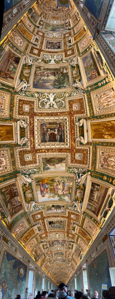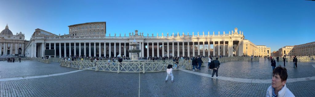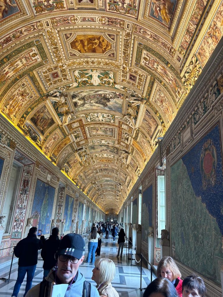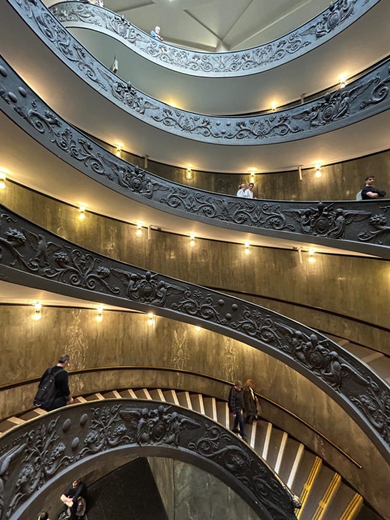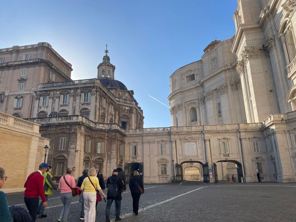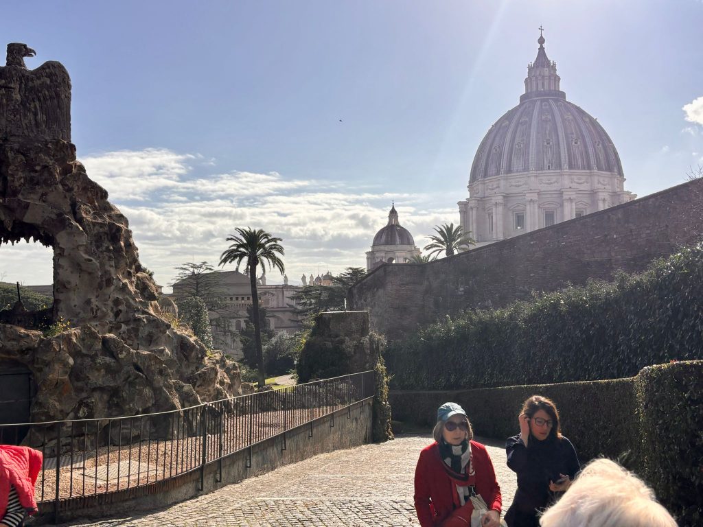 Ein Teil der Gruppe besuchte am Vormittag die Vatikanischen Gärten und Museen. Dabei erfuhren Sie, dass der christliche Glauben in den verschiedenen Epochen immer im Bunde mit der Schönheit ist. Die Beziehung zu Gott drängt den Menschen schöne Dinge zu schaffen. Religion drückt sich immer in Kunst aus.