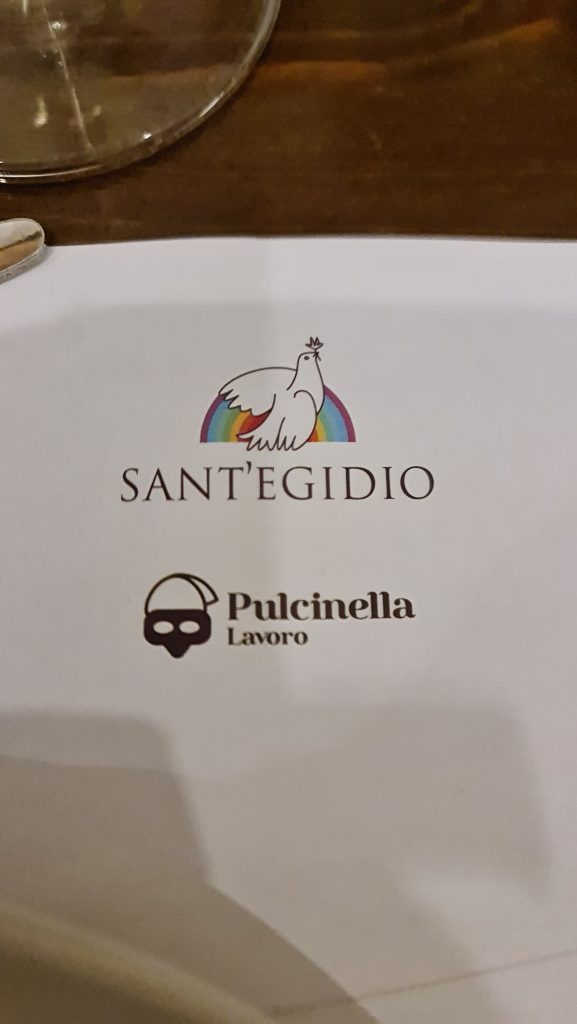 Zum gemeinsamen Abendessen traf man sich in einem Restaurant der Gemeinschaft von Sant´ Egidio, einer großen weltumspannenden christlichen Solidargemeinschaft, die sich für benachteiligte Menschen und den Frieden engagiert.