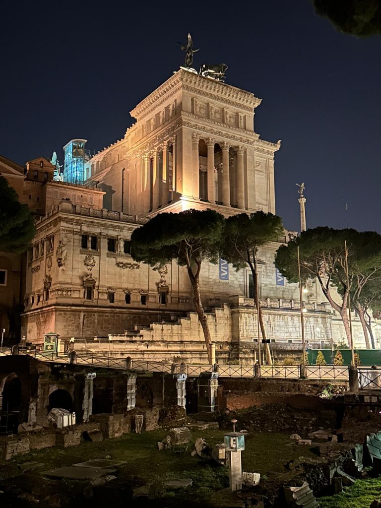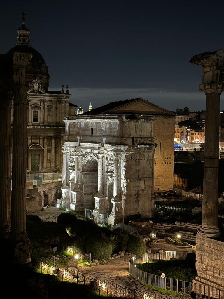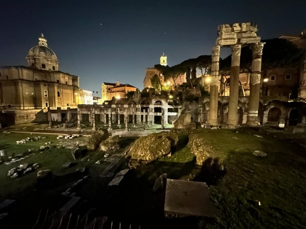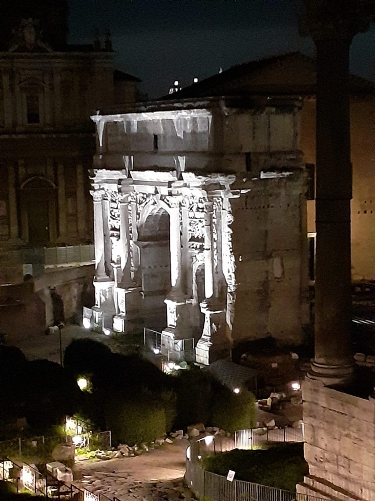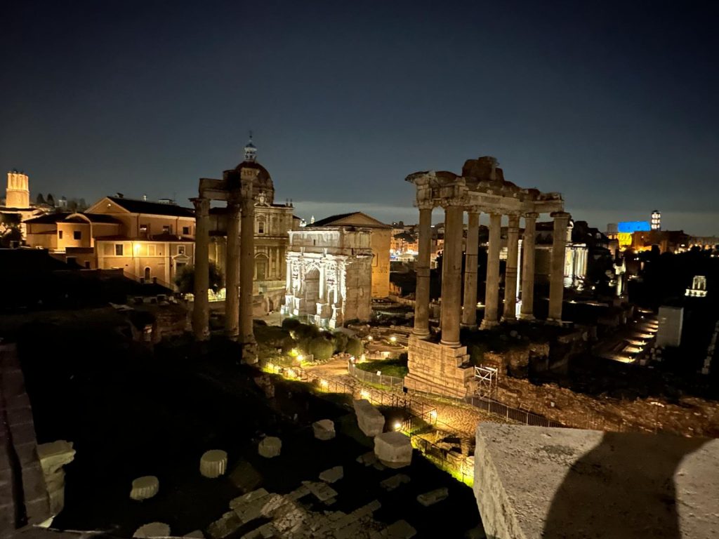 Zu Fuß ging es dann über die Ponte Sisto über die Piazza Farnese, dem Campo de Fiori hin zum Kapitol, wo sich ein wunderschöner nächtlicher Blick auf das Forum Romanum bot. Über die Piazza Venezia und die Imperialen Foren konnte man das Kolosseum bestaunen.