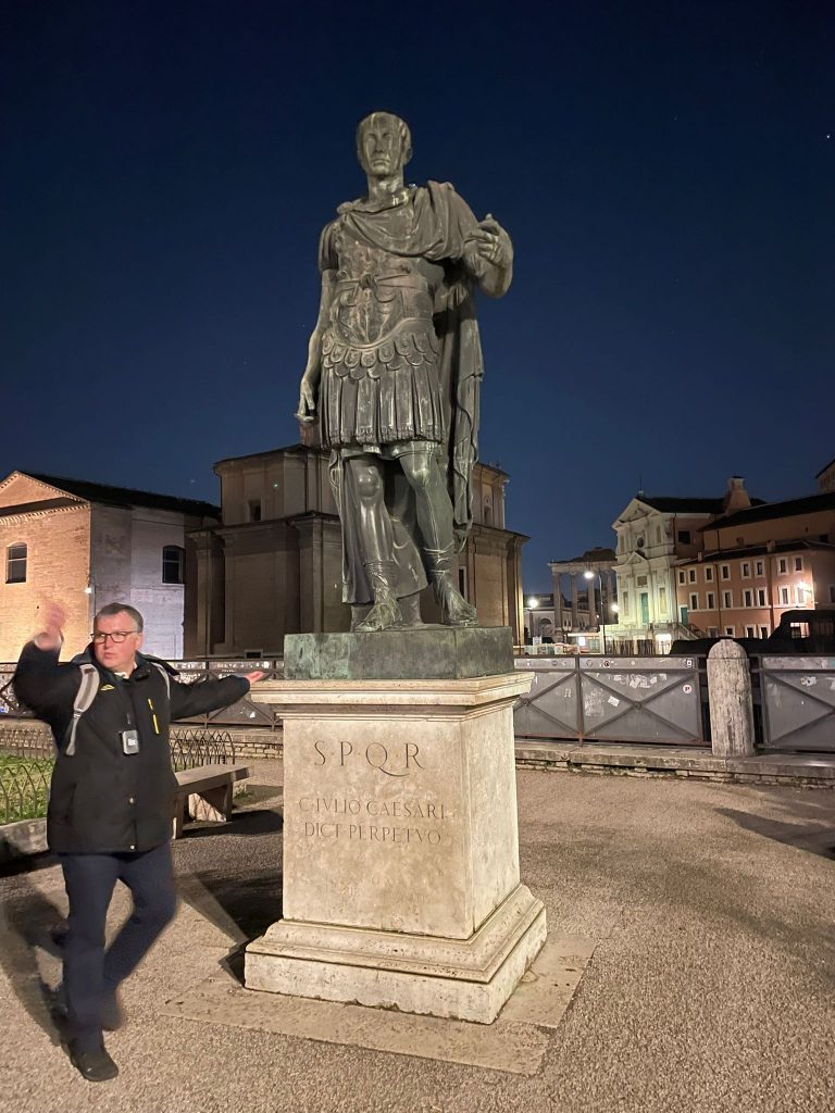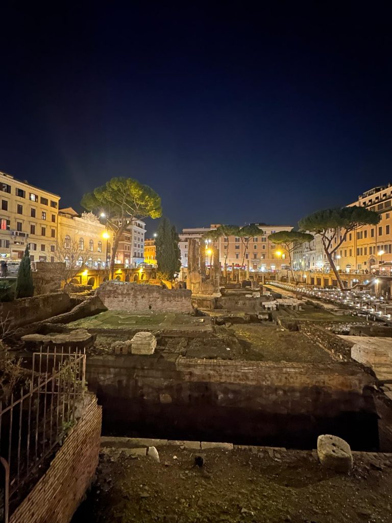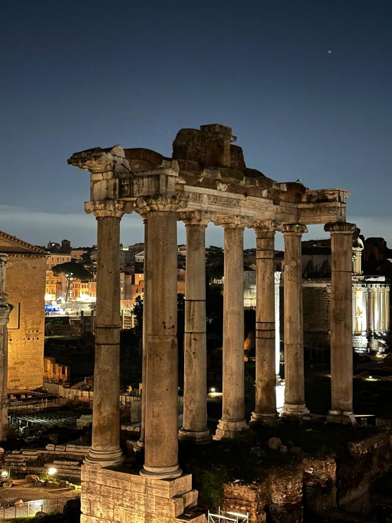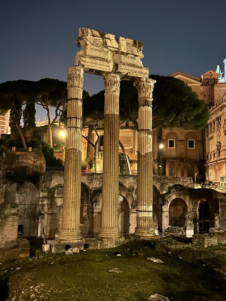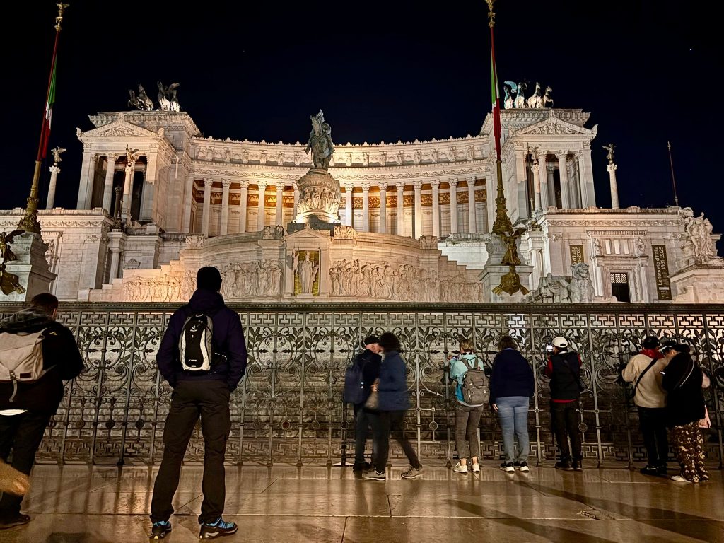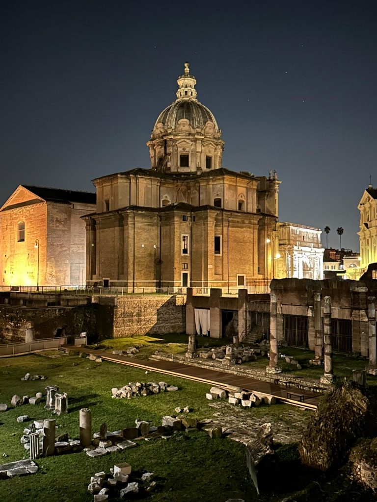 Zu Fuß ging es dann über die Ponte Sisto über die Piazza Farnese, dem Campo de Fiori hin zum Kapitol, wo sich ein wunderschöner nächtlicher Blick auf das Forum Romanum bot. Über die Piazza Venezia und die Imperialen Foren konnte man das Kolosseum bestaunen.