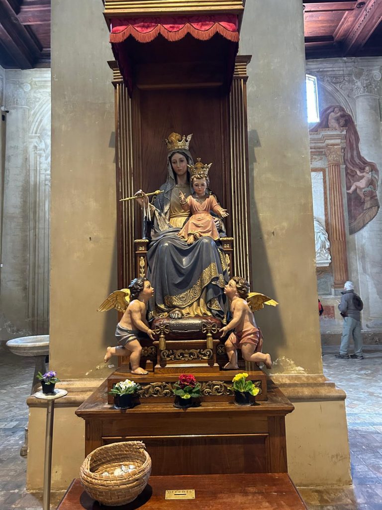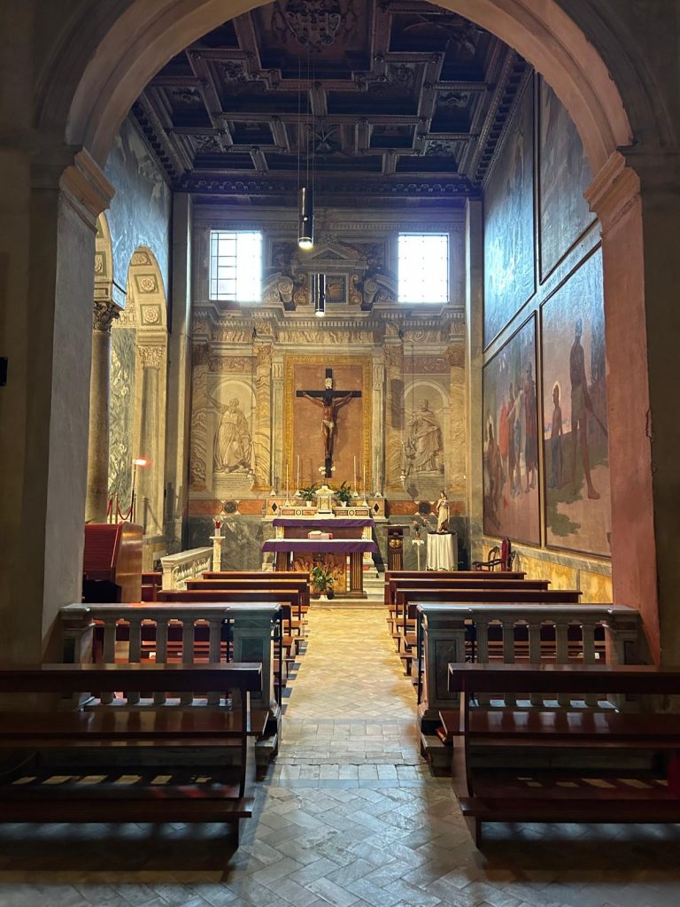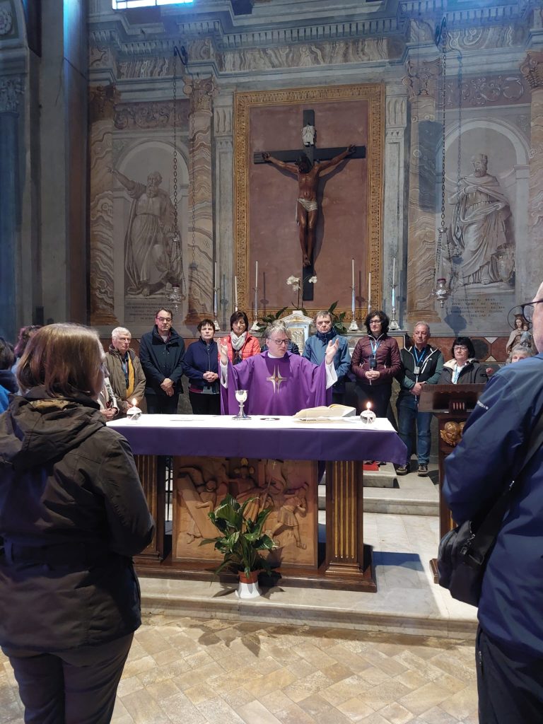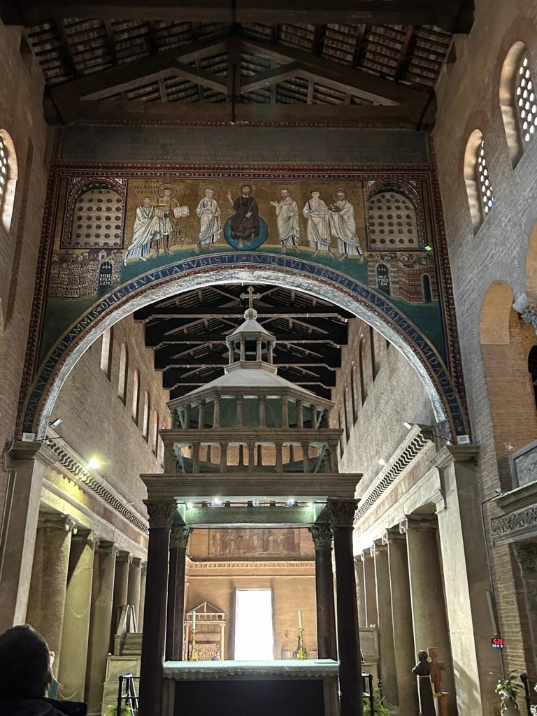 Mit öffentlichen Verkehrsmittel ging es zurück an den Tiber zum Forum Boiarum. Hier erklärte Pfarrer Hirmer wie man sich das antike Leben rund um den Getreidehafen der ewigen Stadt vorstellen musste. In der Kirche St. Maria in Cosmedin erinnerte der Geistliche daran, dass die katholische Kirche viele Riten und Traditionen kennt. So wird in dieser Kirche, die bei Touristen wegen es Wahrheitsmundes sehr bekannt ist, die Liturgie in der Tradition der Ostkirche gefeiert, und da schon seit dem 8. Jahrhundert.