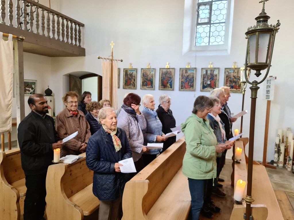 Dekan Michael Hirmer und Kaplan Babu konnte 20 Gläubige begrüßen. Immer wieder wurden Texte aus den Evangelien zur Meditation vorgetragen. Auch viele altbekannte Marienliedern wurden gesungen.