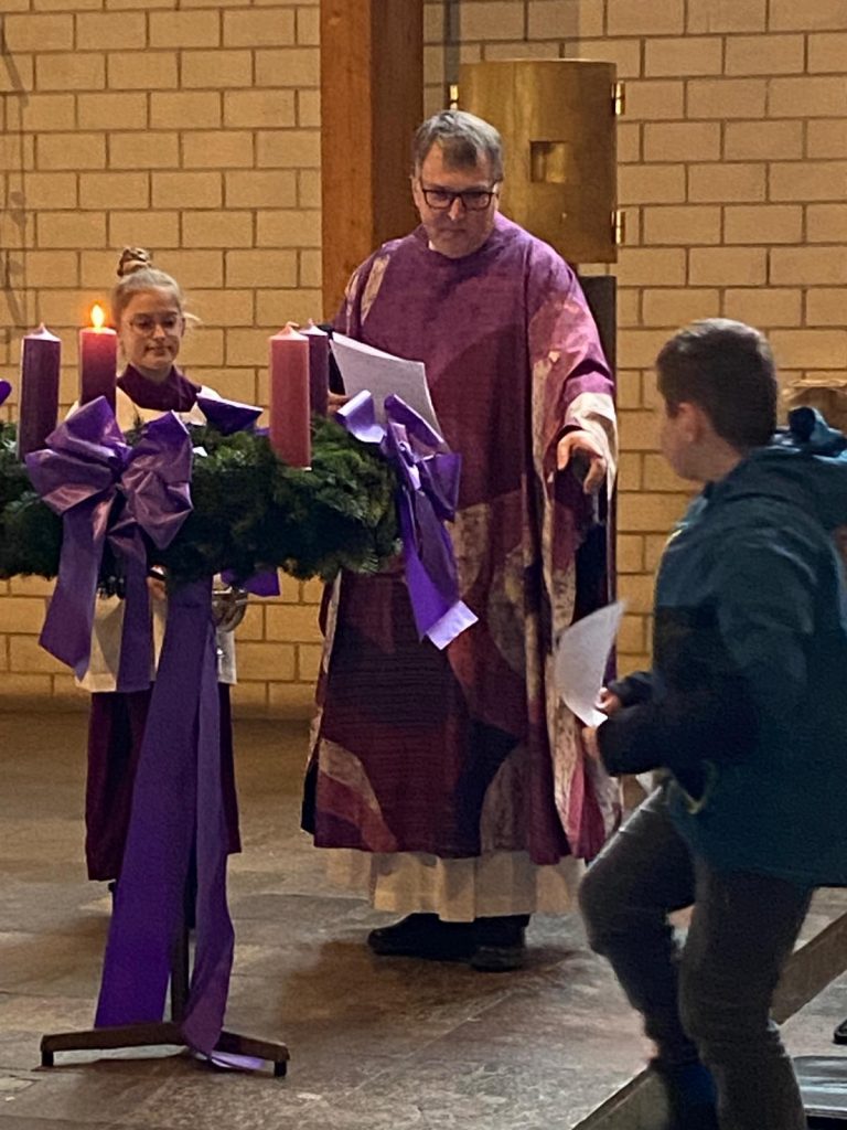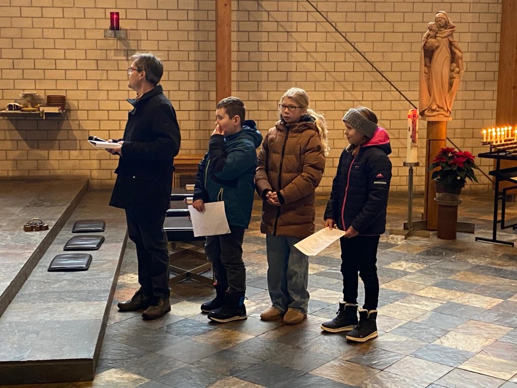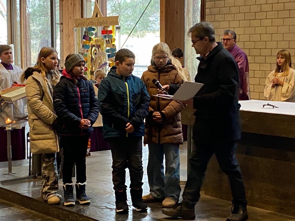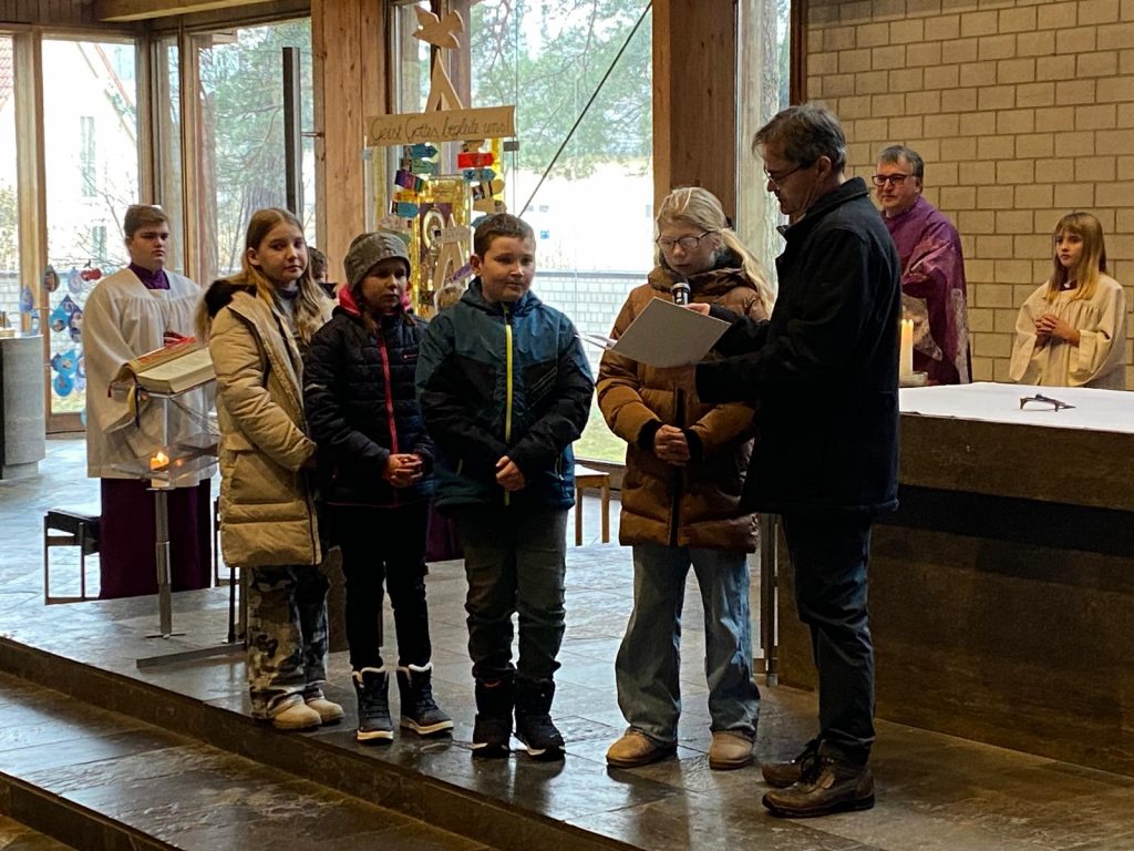 Beim Vaterunser versammelte Dekan Michael Hirmer, welcher der Eucharistiefeier vorstand, die Kinder um den Altar. Nach der heiligen Messe waren alle zum Brunch ins Pfarrheim St. Josef eingeladen.