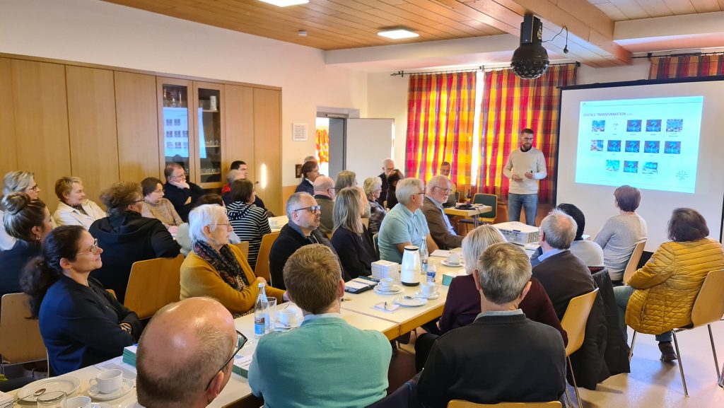 Dazu hat das Bistum Regensburg eine Digitalisierungsinitiative gestartet. Sowohl die Hardware als auch die verwendete Software soll vereinheitlicht werden. „Dadurch wir die Kommunikation der Pfarreien untereinander und mit dem Bistum vereinfacht, langfristig Kosten gespart sowie Arbeitsprozesse vereinfacht.“, erklärt Daniel Schuldt, der mit seinen Kollegen Christian Pfeilschifter und Franz Dietlmeier für das Thema digitale Verwaltung im Bistum Regensburg zuständig ist. Sie erklärten die vielen Baustellen, an denen derzeit gearbeitet wird. Unter anderem wird bald der „Bibot“ an den Start gehen. Eine künstliche Intelligenz, welche die Verantwortlichen in den Pfarreien durch den Dschungel der immer größer werdenden Bürokratie führen soll. Auch soll die Hardware, also Computer oder Drucker, in den Pfarrbüros vereinheitlich werden, um Synergieeffekte beim Einkauf und Wartung zu erzielen.