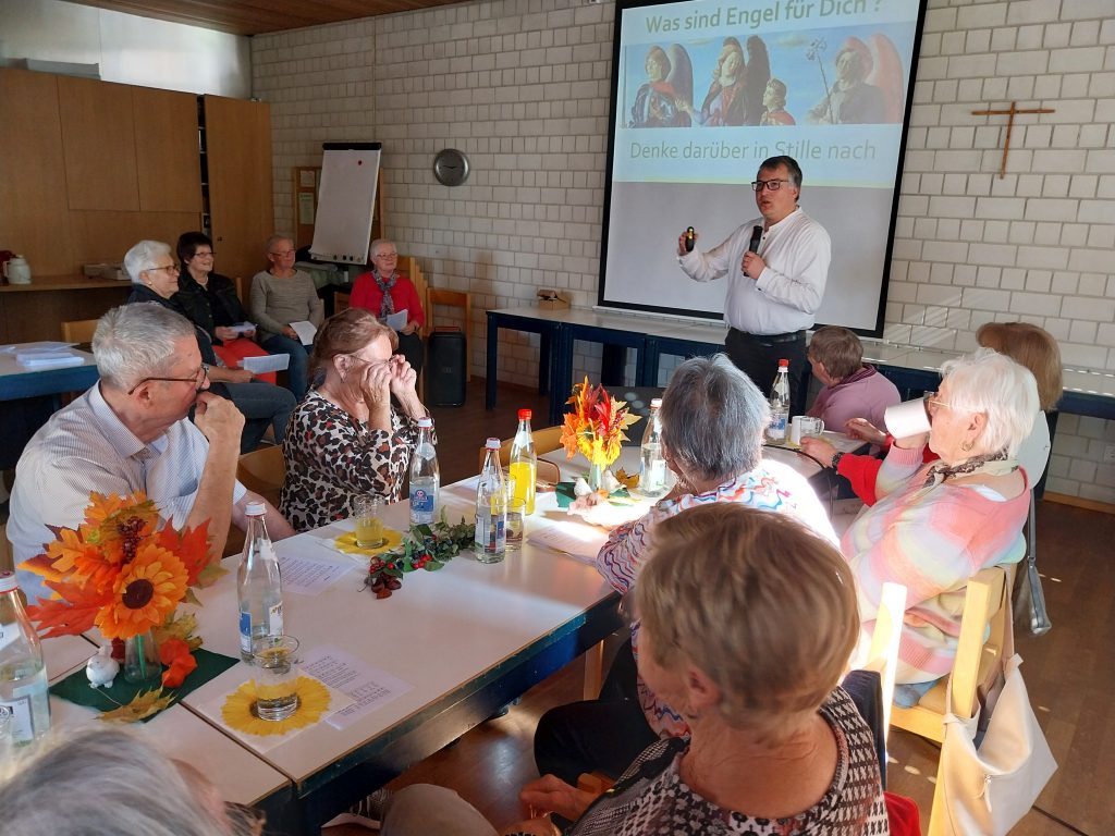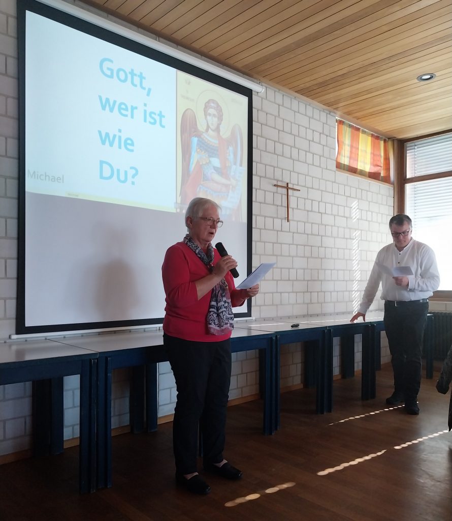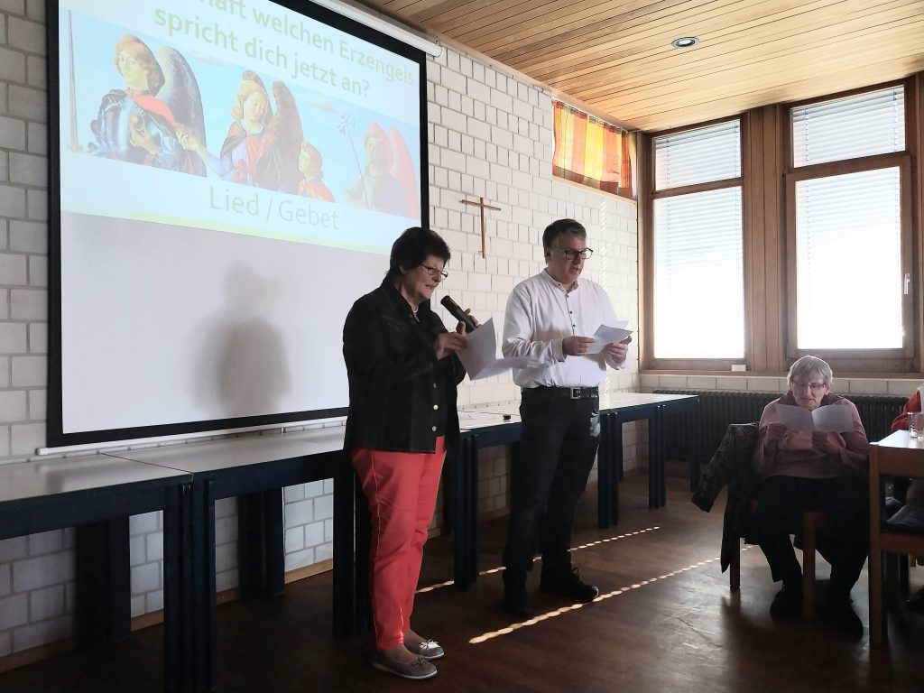Passend zum Gedenktag der heiligen Erzengel Michael, Gabriel und Raphael am 29. September hielt Pfarrer Michael Hirmer an seinem Namenstag einen Vortrag zu diesem Thema. Mit Liedern, Bildern, Texten und Gebeten war der Nachmittag abwechslungsreich gestaltet. Die Bedeutung der Namen: Michael – wer ist wie Gott? Gabriel – Gott ist meine Stärke und Raphael – Gott ist Heil.