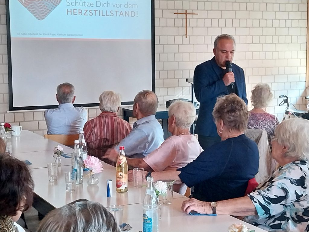Dieses Mal war beim Seniorencafe der Arzt Dr. Kabir vom Krankenhaus Burglengenfeld zu Gast mit einem Vortrag zum Thema „plötzlicher Herztod“.