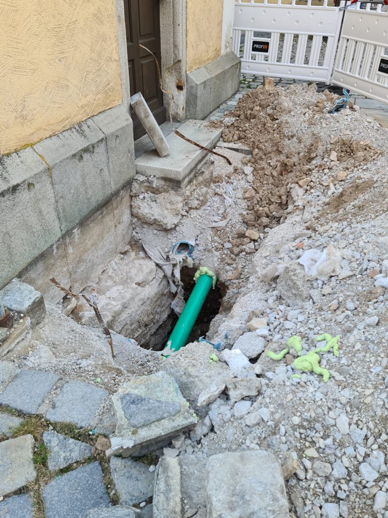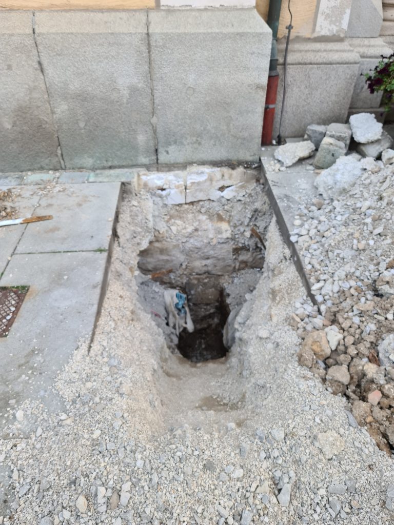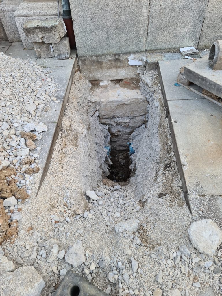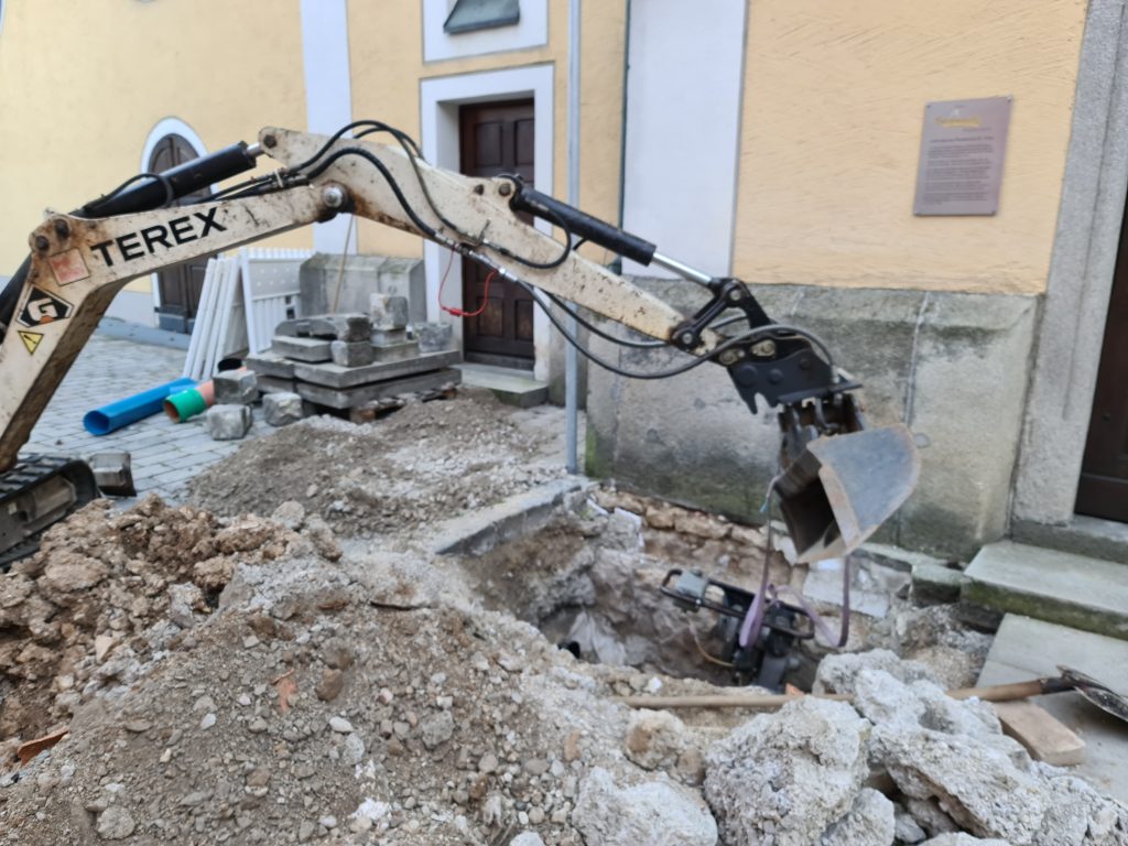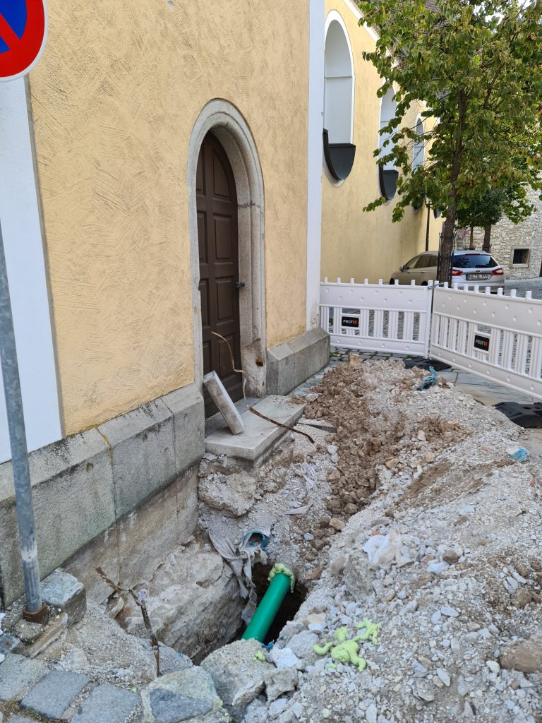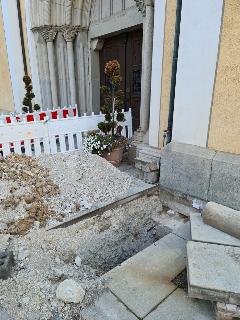 Die Bilder zeigen die Probegrabungen am Fundament der Turmanlage der Vitus-Kirche. Bei den Schürfungen wurde die Standfestigkeit der Türme an sechs Orten geprüft.