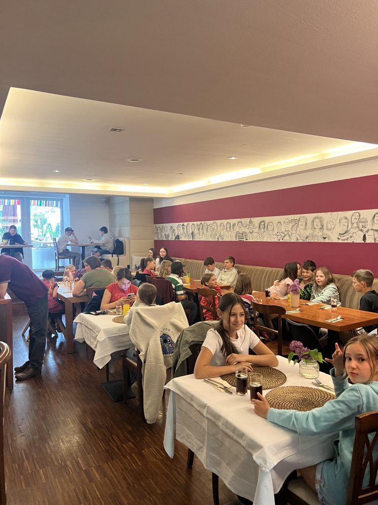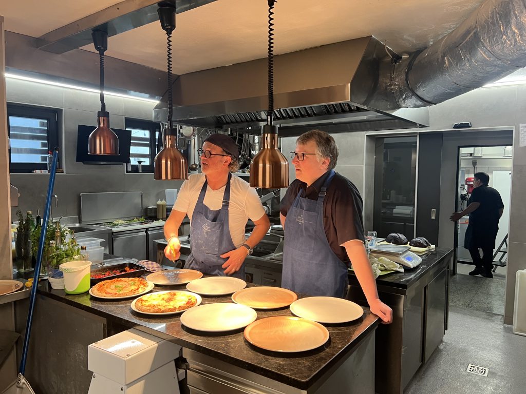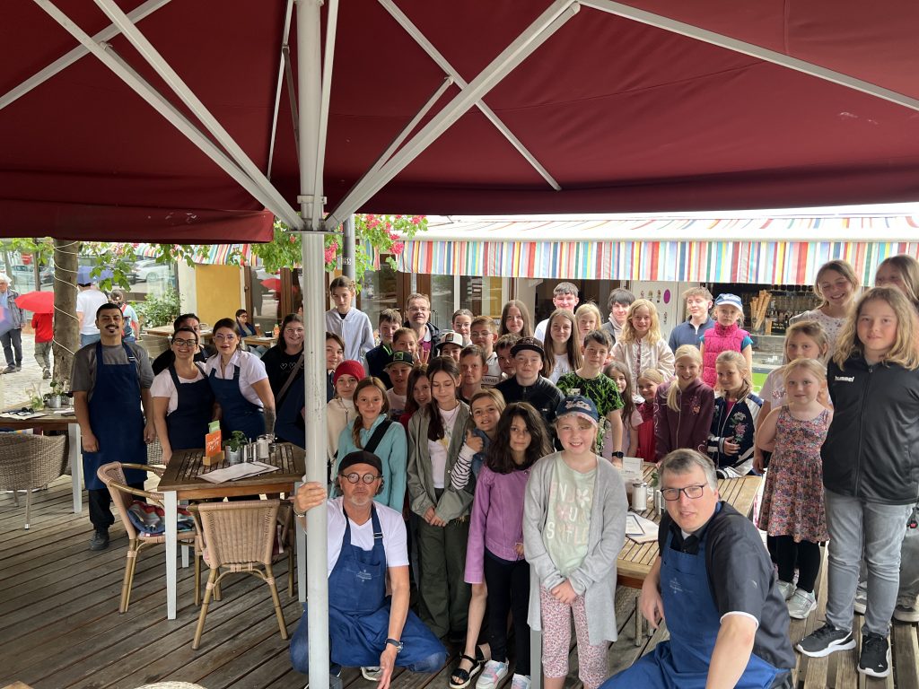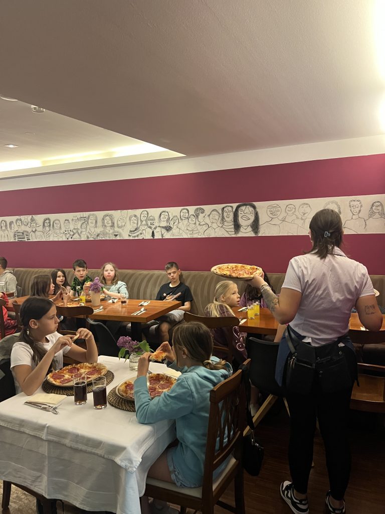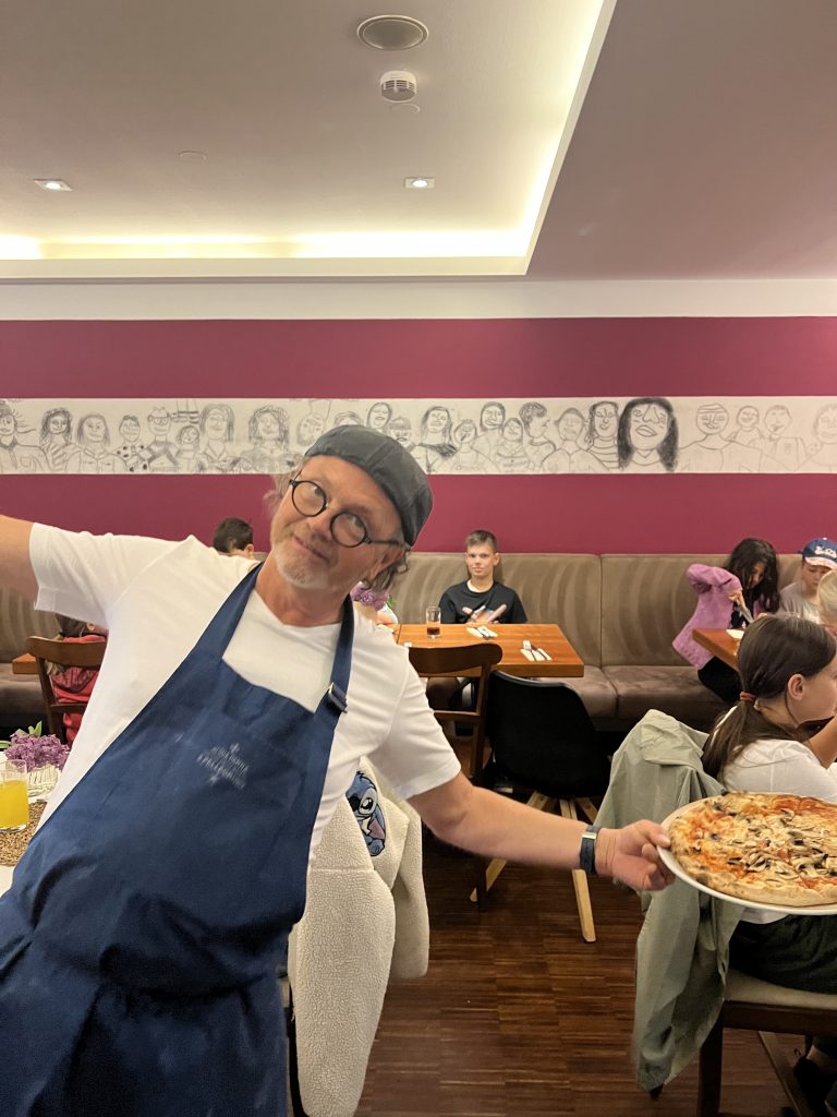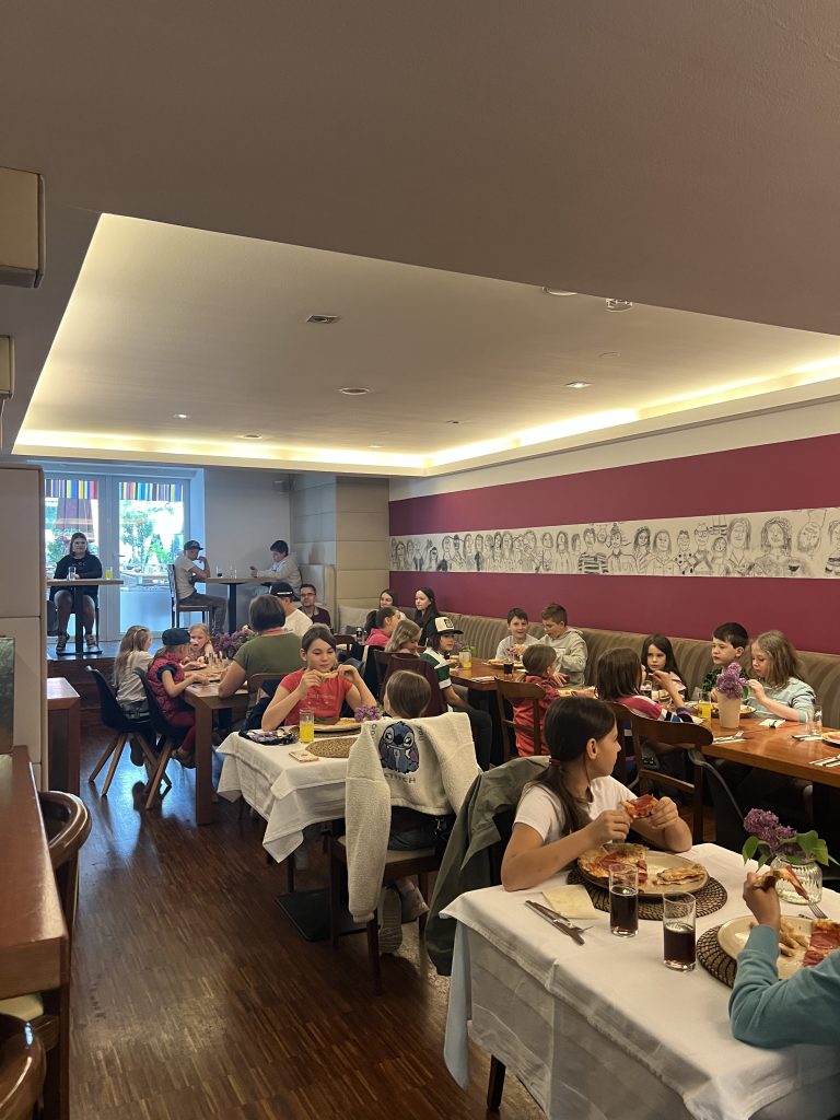 Am ersten Maisamstag war die Trattoria Aroma am Burglengenfelder Marktplatz voll mit Sternsingerinnen und Sternsinger gefüllt. Grund hierfür war, dass die Gastwirtfamilie Dimai die Kinder und Jugendlichen zum großen Pizza-Danke-Essen eingeladen hat. Gemeinsam mit Pastoralreferent Konrad Kraus waren die Sternsinger zahlreich der Einladung gefolgt. Auch Pfarrer Michael Hirmer war mit dabei, den Sanzio Dimai gleich als Bedienung mit einspannte. – Danke, lieber Sanzio, für die Einladung 🙂 – wir kommen gerne wieder 😉