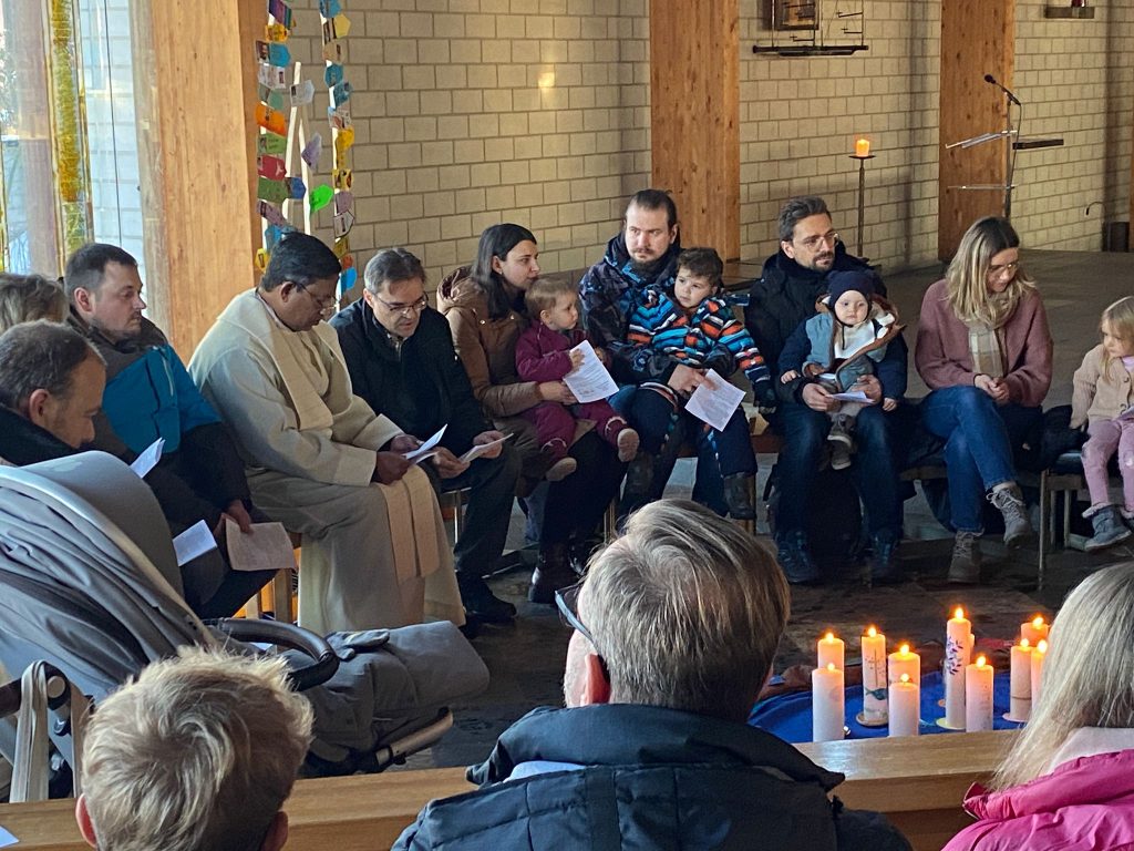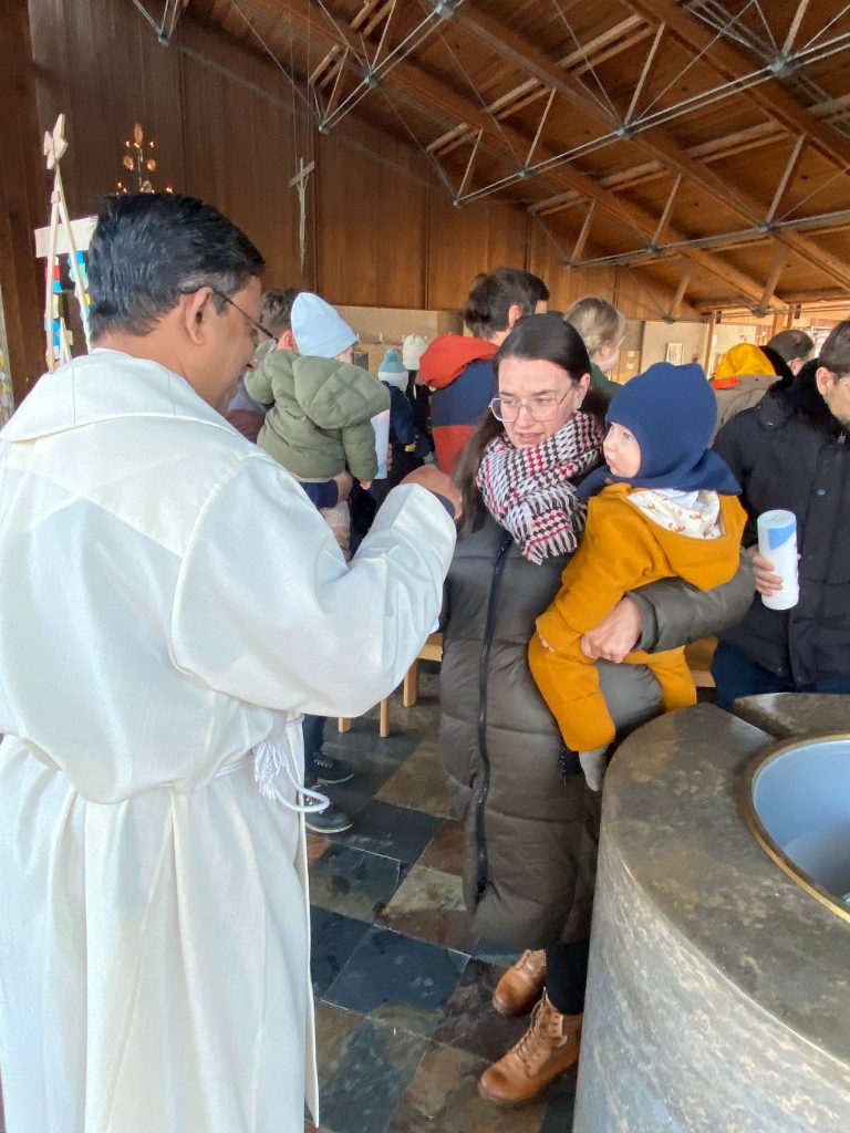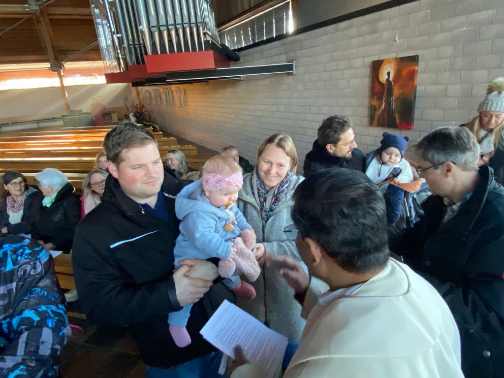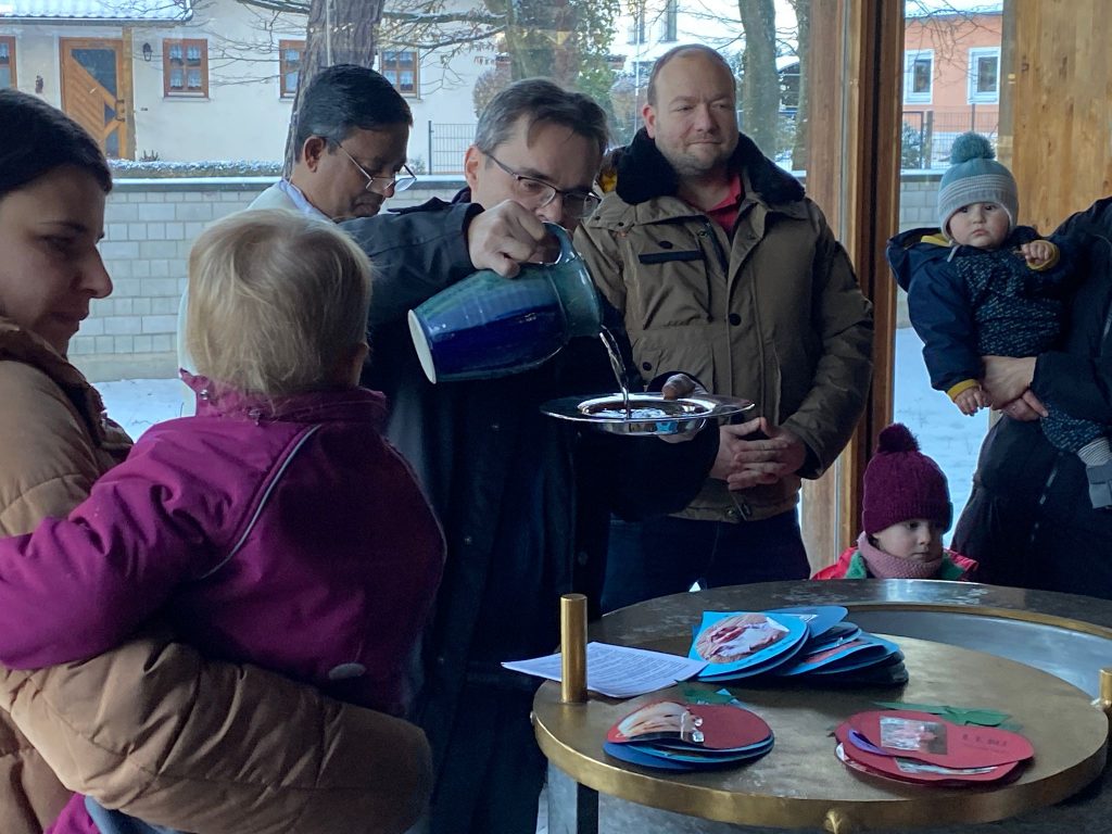 Die Stadtkirche Burglengenfeld lud am Fest „Taufe des Herrn“ alle Familien ein, die im vergangen Jahr eine Taufe feiern durften. Pastoralreferent Konrad Kraus gestaltete ein Segensfeier für die Kinder und deren Familien. Pfarrvikar Kumar segnete die Neugetauften. Danach erging Einladung ins Pastoralzentrum zu Kaffee und Kuchen.