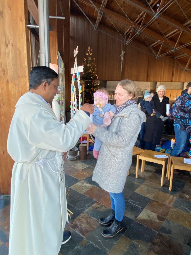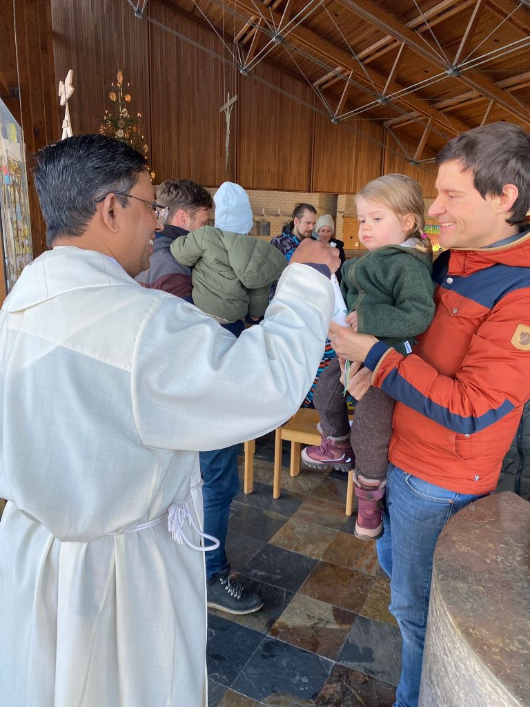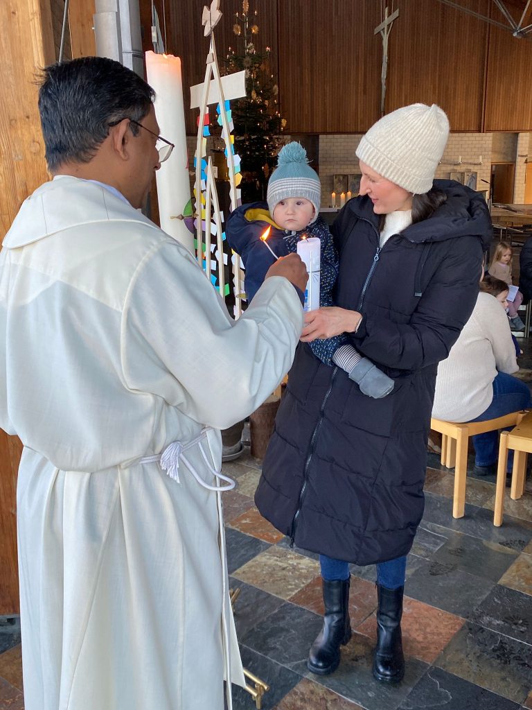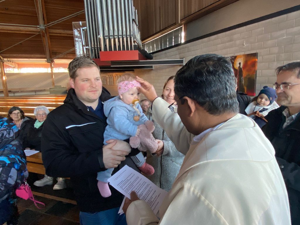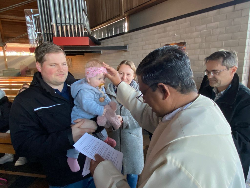 Die Stadtkirche Burglengenfeld lud am Fest „Taufe des Herrn“ alle Familien ein, die im vergangen Jahr eine Taufe feiern durften. Pastoralreferent Konrad Kraus gestaltete ein Segensfeier für die Kinder und deren Familien. Pfarrvikar Kumar segnete die Neugetauften. Danach erging Einladung ins Pastoralzentrum zu Kaffee und Kuchen.