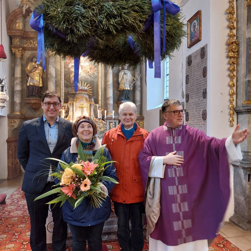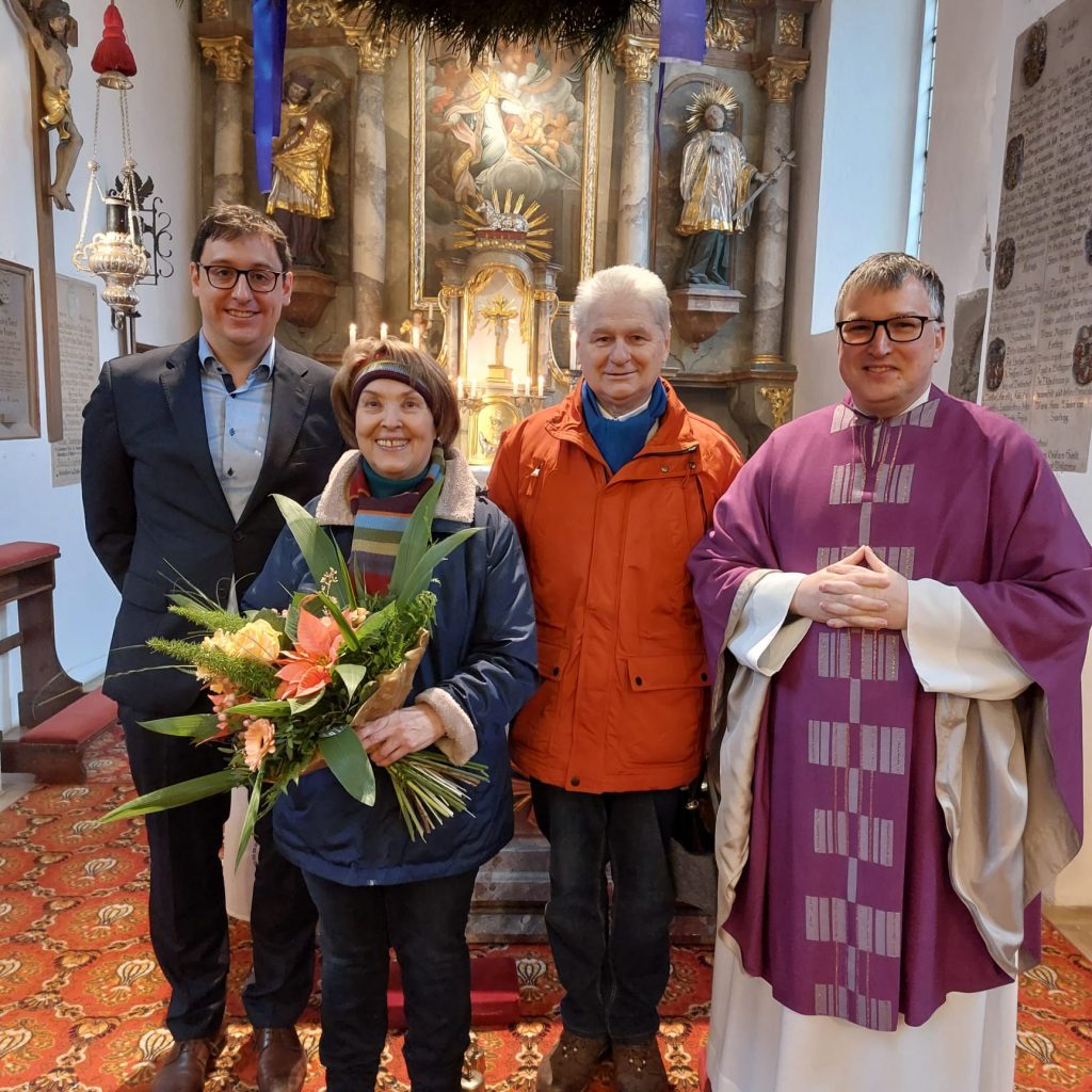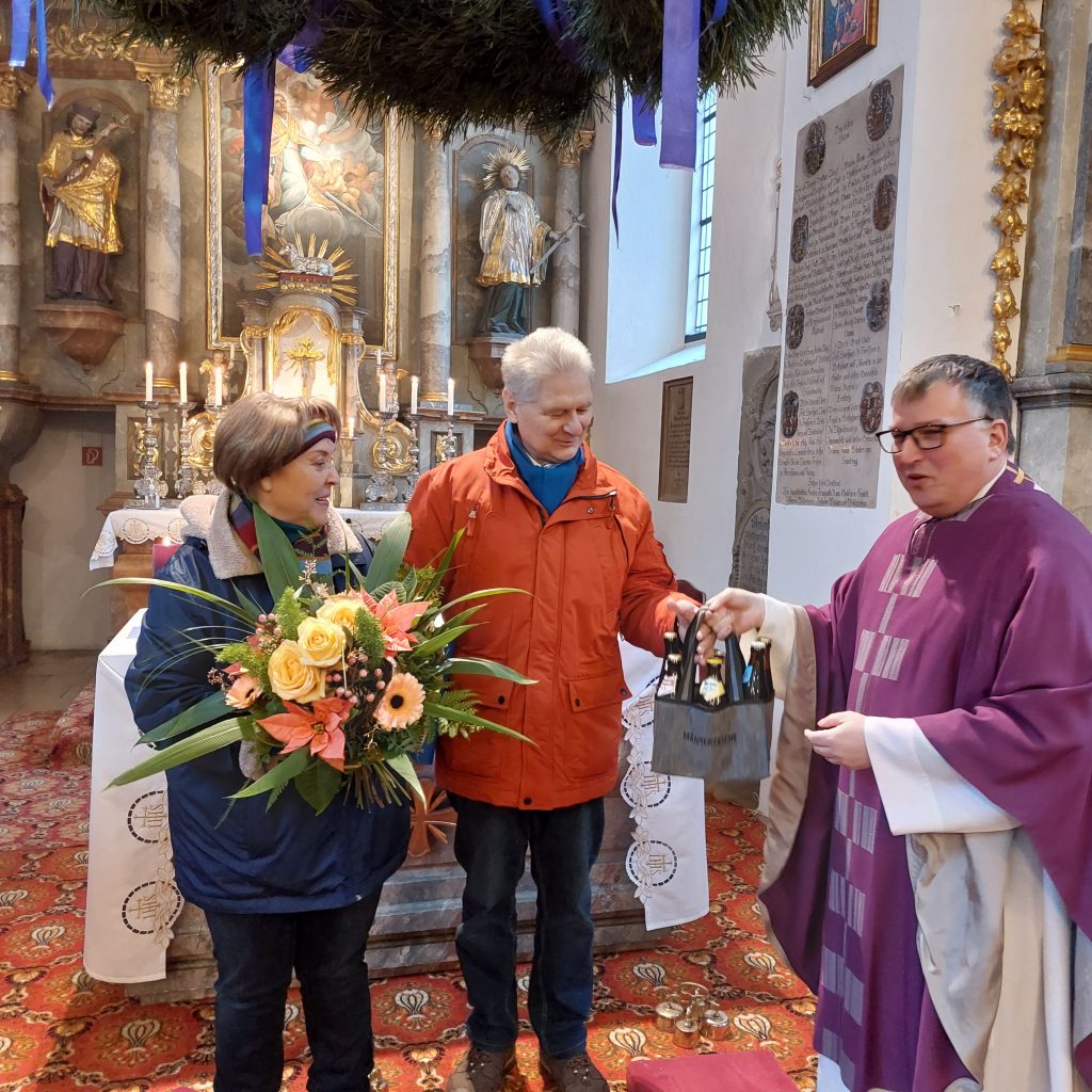 Zum Abschied von Organisten Hildegart Kräuter als Organistin von Dietldorf gab es einen Blumenstrauß, die Sonntagsbibel, eine Männerhandtasche für den Gatten, ein Vergelt´s Gott vom Pfarrer und Dankesworte des Pfarrgemeinderatsvorsitzenden Christoph Leikam: