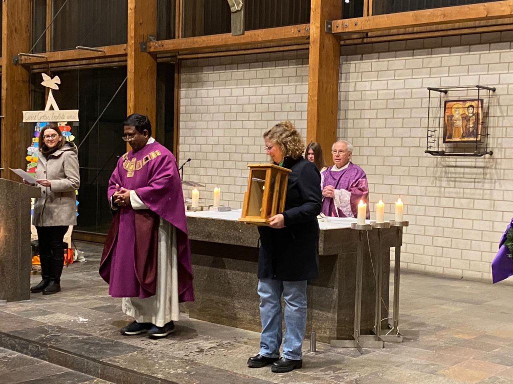 Wieder einmal geht sie auf Wanderschaft. Drei Statuen mit der schwangeren Gottesmutter Maria, werden den ganzen Advent über in der Stadtkirche Burglengenfeld von Haus zu Haus getragen. In den Gottesdiensten am ersten Adventssonntag wurden die Madonnen gesegnet und auf ihre adventliche Reise geschickt.