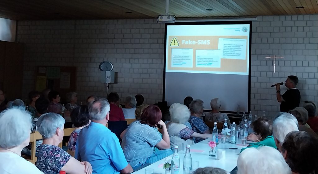 Beim Vortrag der Kriminalpolizei war es sehr interessant. Beispiele aus der Praxis und praktische Tipps zum Thema „Enkeltrick, Schockanrufe und weitere Betrügereien“ waren sehr hilfreich.
