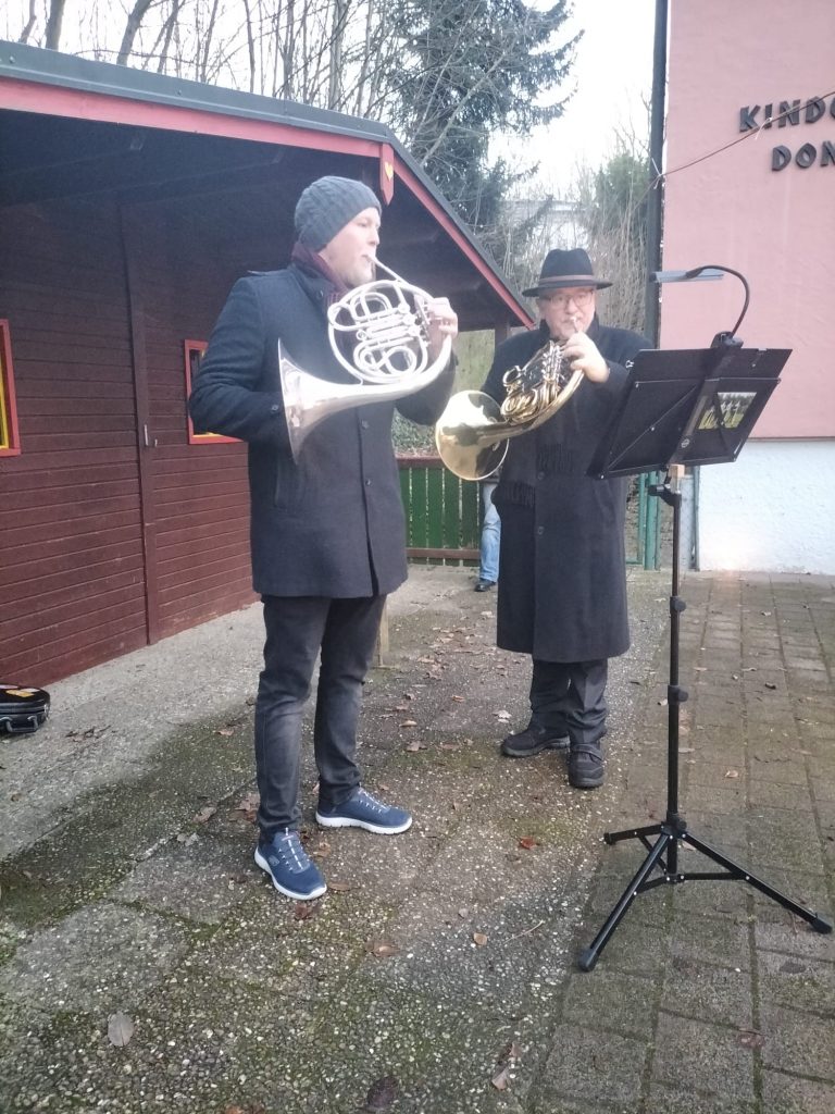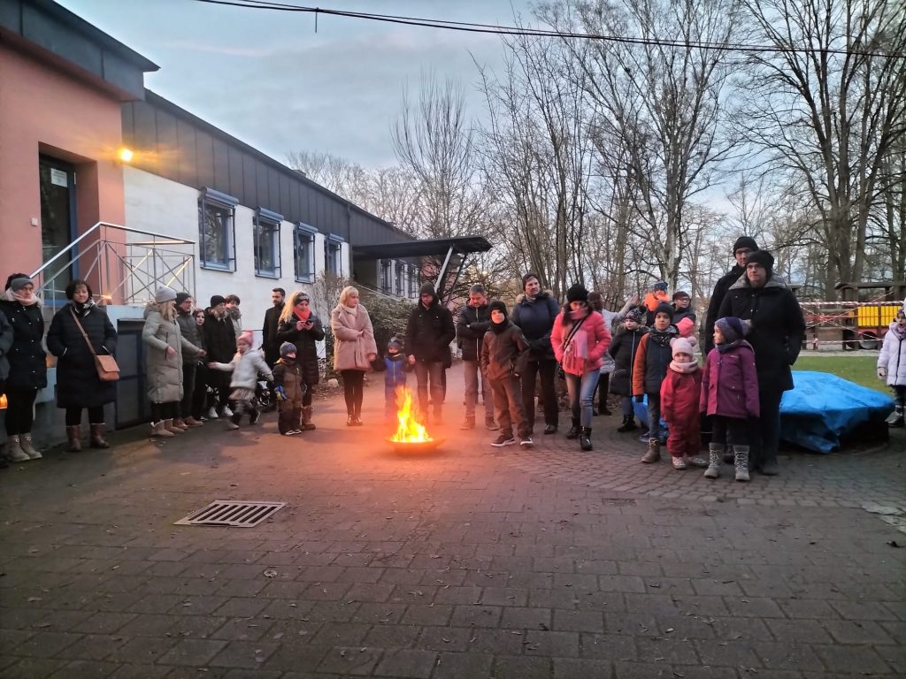 Zur Waldweihnacht am Heiligen Abend kamen viele Menschen zusammen: mit Kinderwagen, Rollstuhl, Rollator oder zu Fuß. Die Gemeinschaft im Beten, Singen und Zusammenstehen war zu spüren. Ein Bläserduo gestaltete die Andacht musikalisch. Die Sehnsucht nach Frieden und einem guten Miteinander erlebten die Gläubigen, während die Glocken der Stadt im Gelände des Don-Bosco-Kindergartens zu hören waren. Frohe Weihnachten – in den Häusern und bei den Menschen der Stadt!