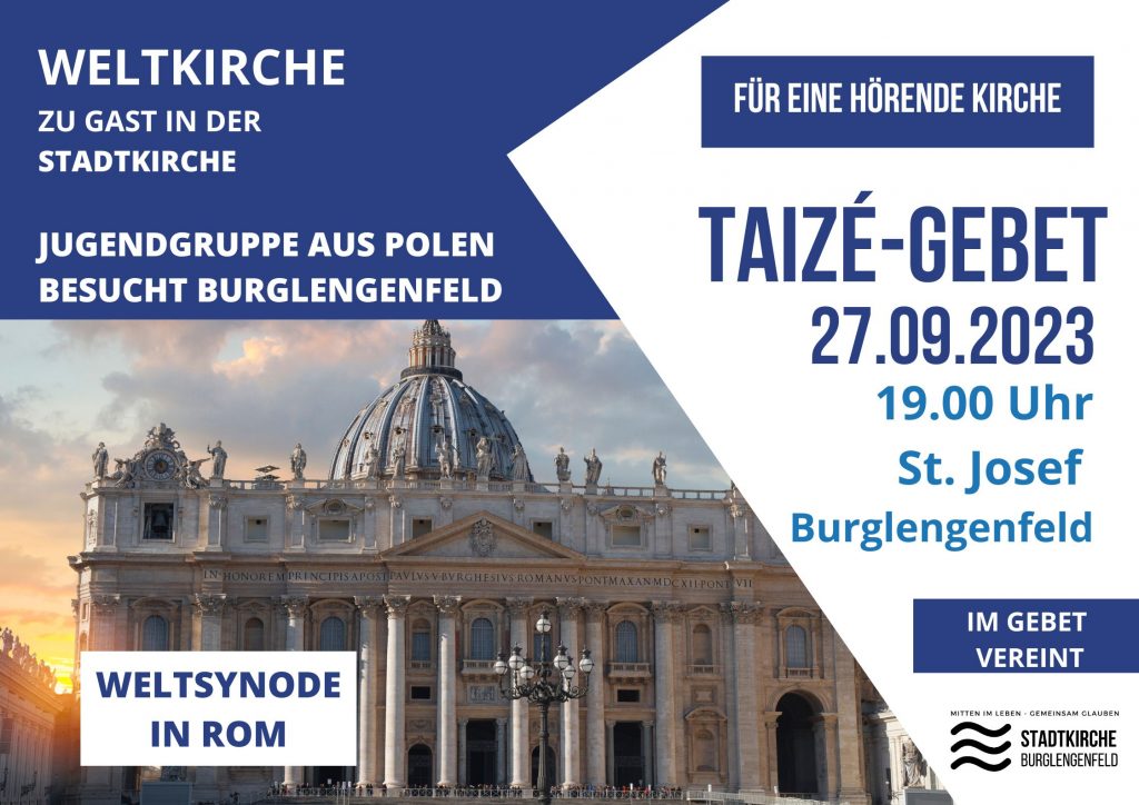 Hier kommt nun die Stadtkirche Burglengenfeld ins Spiel. Denn zur Weltsynode reisen auch Jugendliche aus Nordosteuropa an. 53 von ihnen werden auf ihrer Fahrt nach Rom im Pfarrzentrum St. Josef Burglengenfeld Halt machen und dort übernachten. Kirchenpfleger Hubert Fleischmann zeigt sich gastfreundlich. „Für unsere Stadtkirche ist es eine große Ehre, dass wir so spontan gefragt worden sind, jungen Menschen bei uns unterzubringen.“ In der Tat ist das Gastspiel der vor allem aus Polen stammenden Jugendliche sehr kurzfristig angelaufen. „Unser Pfarrer hat selbst erst Anfang September die Anfrage von den Brüdern der ökumenischen Gemeinschaft von Taizé bekommen, ob er hier helfen kann.“, lacht Pfarrgemeinderatssprecher Markus Heider, der gemeinsam mit seiner Kollegin Edith Fischer und Hubert Fleischmann kurzerhand ein Abendessen und ein Frühstück für die Gäste auf die Beine stellen wird. „Höhepunkt unserer Gastfreundschaft.“, betont der Burglengenfelder Pfarrer Dekan Michael Hirmer, „wird aber ein gemeinsames internationales Gebet sein, das am Mittwoch, 27. September um 19.00 Uhr in St. Josef Burglengenfeld stattfinden wird.“ Eingeladen, so der Geistliche, sind auch alle Interessierten, die für eine Erneuerung der Kirche beten wollen.