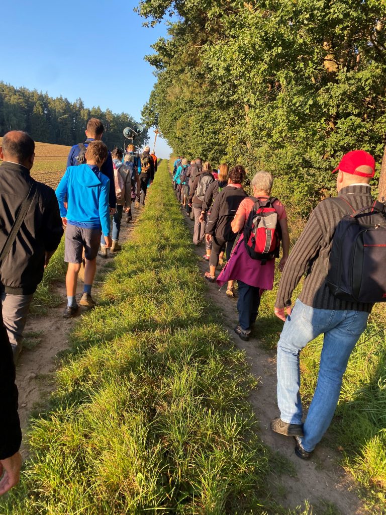 „Perfekte Bedingungen!“, schmunzelt Pilgerführer Leonhard Riepl als er am Samstag früh die Burglengenfelder Wallfahrer nach Maria Ort begrüßen durfte. Und tatsächlich wartete auf die Pilger ein wunderschöner Spätsommertag mit wunderschönem Sonnenschein und perfekten Temperaturen. Erstmal mit dabei war Kaplan Babu, der gerade erst seinen Dienst in der neuen Stadtkirche begonnen hat. Gemeinsam mit Pastoralreferent Konrad Kraus begleitete er die Wallfahrer.