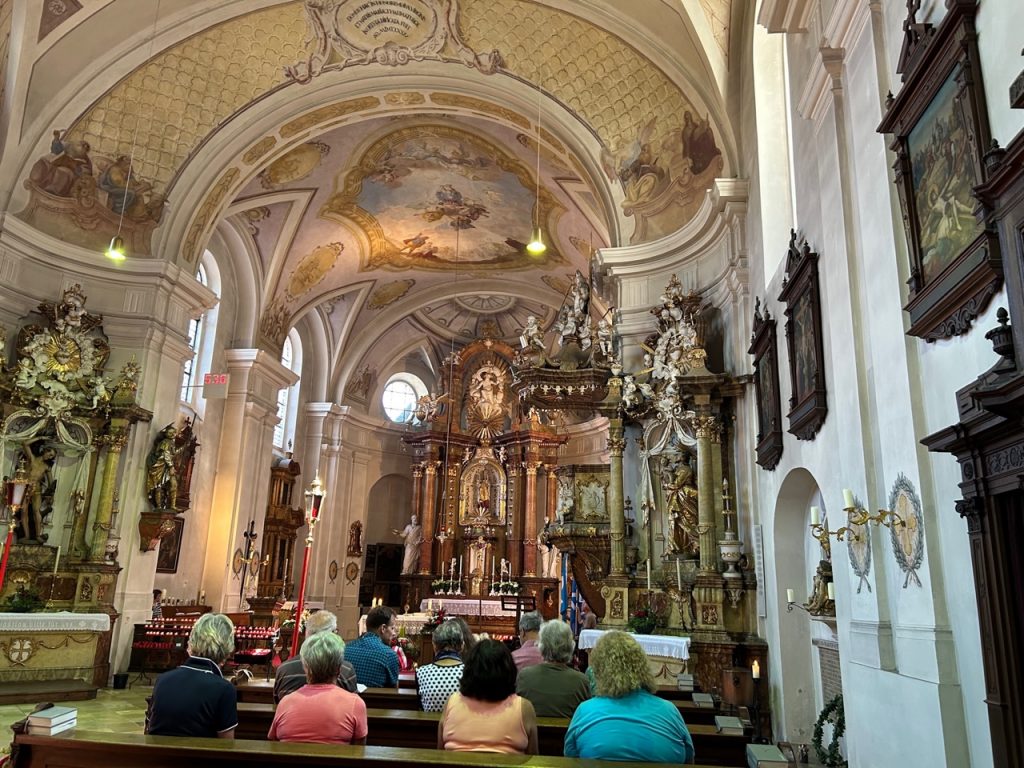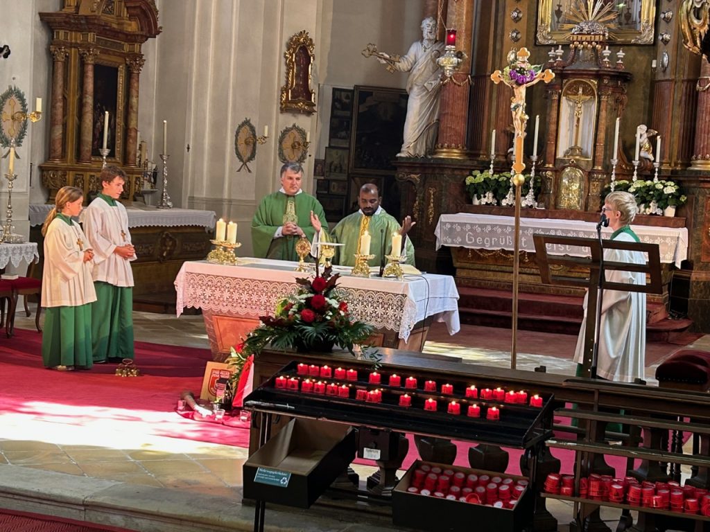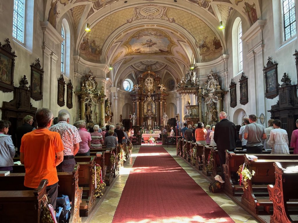 In der Wallfahrtskirche Maria Ort angekommen wartete schon Dekan Michael Hirmer auf die Pilger. Gemeinsam mit Kaplan Babu konzelebrierte er die Messfeier zu Ehren der Gottesmutter Maria und chauffierte dann einige Wallfahrer mit dem Bus zurück nach Burglengenfeld.