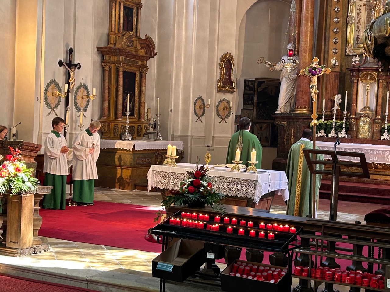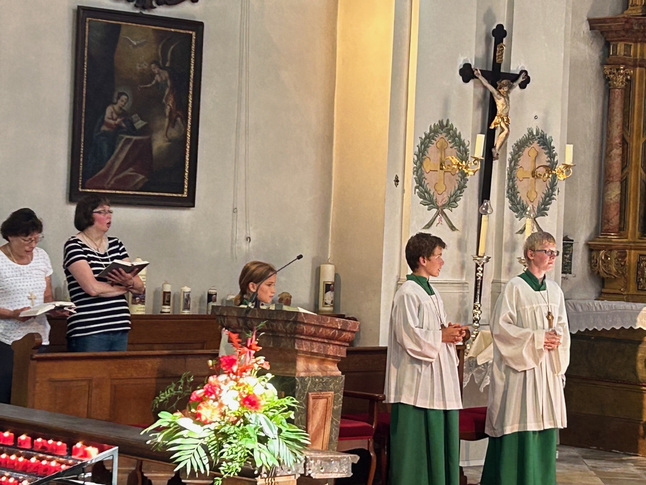 In der Wallfahrtskirche Maria Ort angekommen wartete schon Dekan Michael Hirmer auf die Pilger. Gemeinsam mit Kaplan Babu konzelebrierte er die Messfeier zu Ehren der Gottesmutter Maria und chauffierte dann einige Wallfahrer mit dem Bus zurück nach Burglengenfeld.